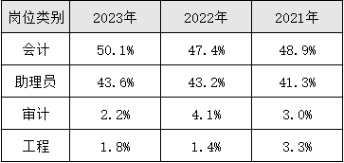 小编总结了占比最高的会计、助理员、审计、工程四个岗位历年招考比例。