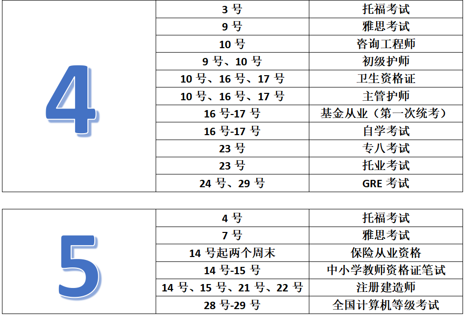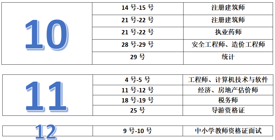 各类考试时间最全汇总!
