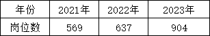 从 2021年—2023年,会计学专业对应岗位数不断增加,从560个涨到900个,军队文职对会计学专业的需求变多。