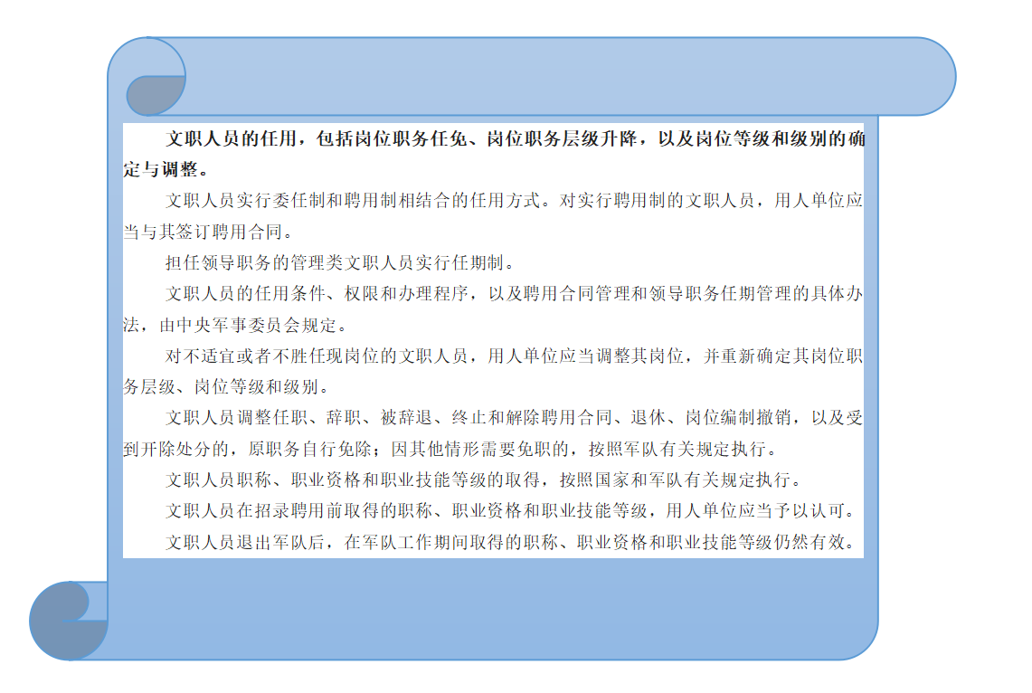 注:以上内容摘自《中国人民解放军文职人员条例》