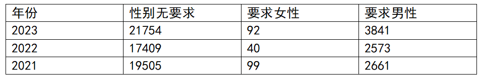 来看一下这三年的性别招考数据: