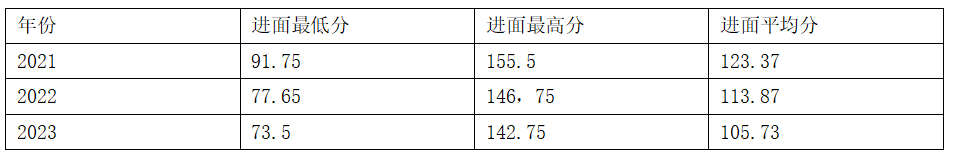 以下是2021年到2023年汉语言文学专业被招录考生的成绩表: