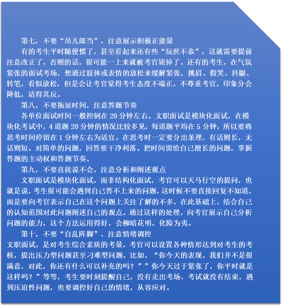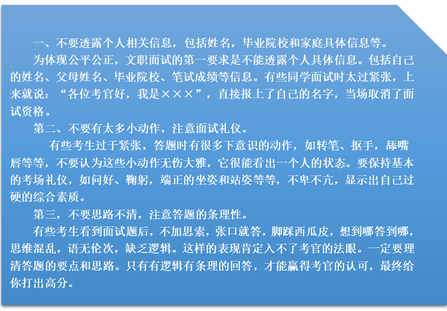今天小编根据往年考生在面试的出现的问题,向大家总结十大十分重要的经验,记得提前点赞收藏哦!