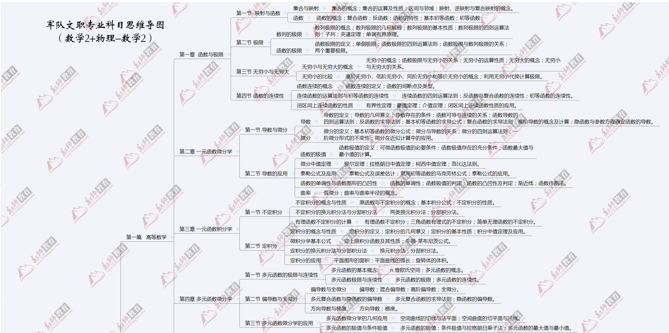 以下是红师教育团队专家为大家构建的数学2+物理学科目的思维导图,希望可以为各位考生在备战军队文职路程中助力!