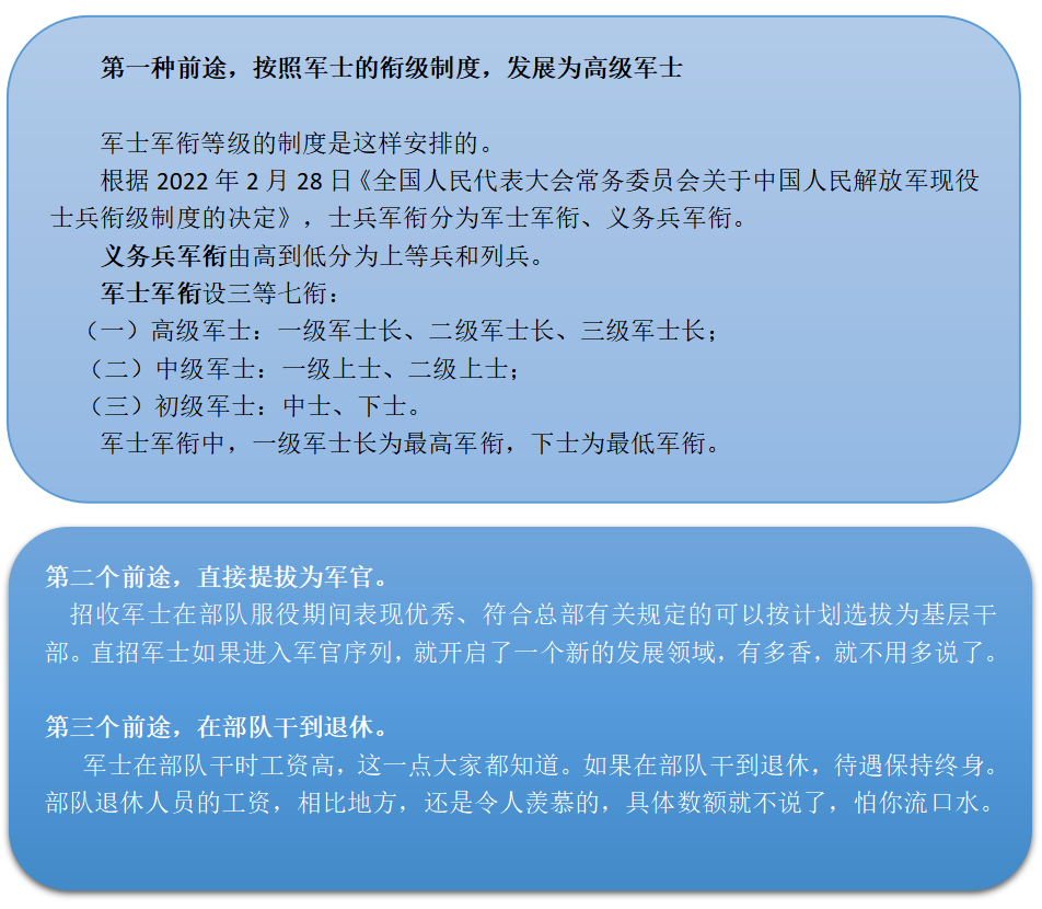 很多人向小编咨询:直招军士到部队后有没有发展前途,该如何规划自己的职业发展,今天我们就来唠唠军士的发展前途这个话题。