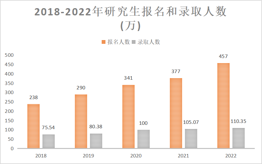 然而,现在要在这里提醒大家的是:近年来,我国研究生录取人数虽然在逐年增加,但报名人数突飞猛进,见下表: