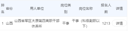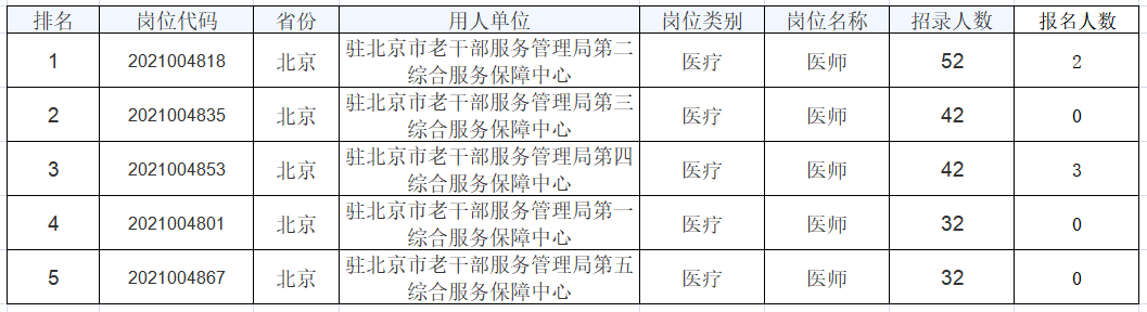 从上图我们可以看出干休所的医师岗位招考数量很多,报考的人却寥寥无几。