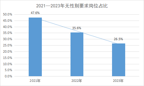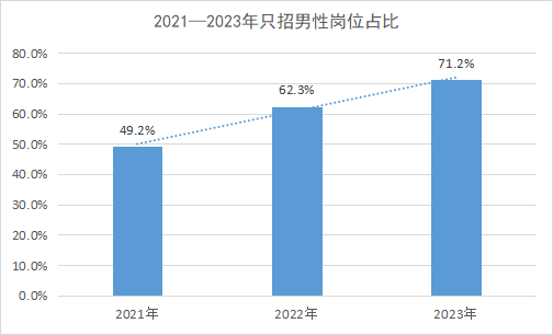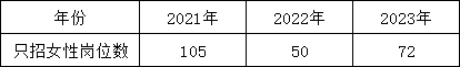 从2021年到2023年。计算机专业只招收女性的岗位数量不多,只有几十个。