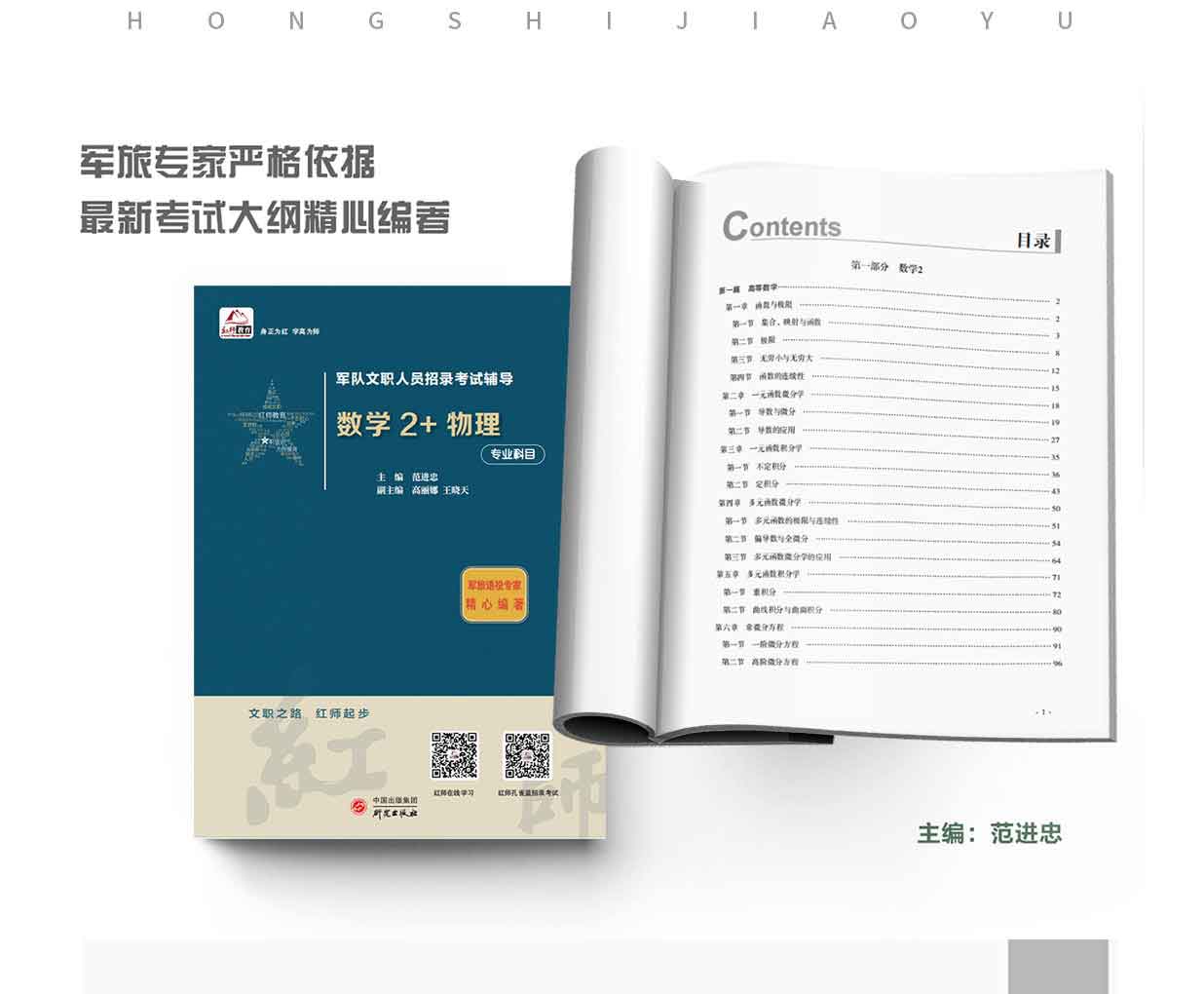 军队文职数2+物理是由红师教育军考专家精心编写的一本整合考纲、重点、归纳、逐一精讲的文职考试辅导书籍。该书以军队专家视角解析答题思路,精选例题触类旁通,巩固提高学习效果。书中点拨重点内容和答题技巧,分析考试大纲,明晰考察目的和考试范围。