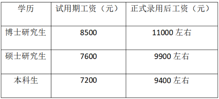 按照每个岗位等级最低级别档次计算:普通工每月4300余元,专业技能五级每月5300余元,专业技能四级每月6700余元,专业技能三级每月8000余元,以上均不含特殊津贴补贴、奖励工资和定期增资。