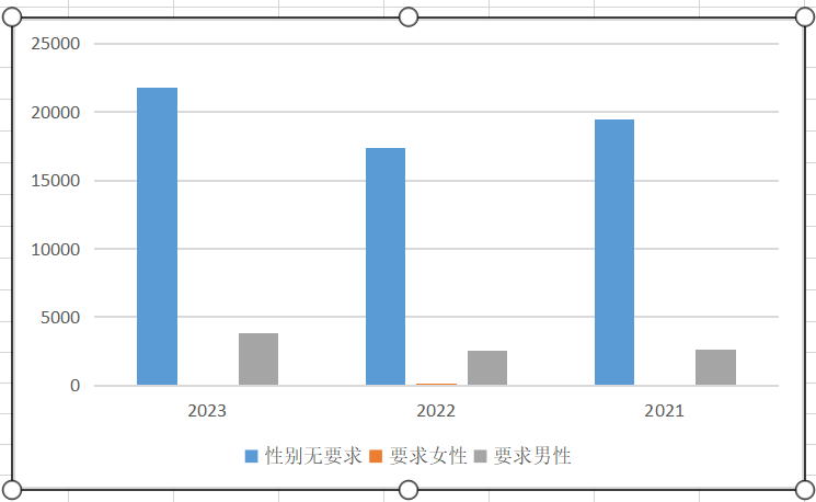 来看一下这三年的性别招考数据: