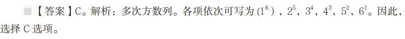 2、请选择最合理的一项来填充所给数列的空缺项,使之符合原数列的排列规律:( ),32,81,64,25,6。