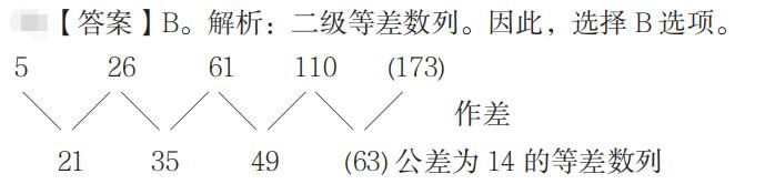 4、请选择最合适的一项来填充所给数列的空缺项,使之符合原数列的排列规律:5,26,61,110,( )。
