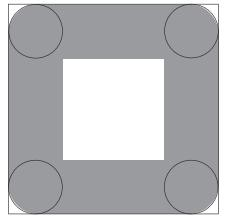 解析:如下图,阴影部分即为所求。先去掉中间空白部分 8×8-4×4=48,再去掉四个角,四个角的面积为边长为 2 的正方形减去一个与其四边相切的圆,即 2×2-π=4-π,所以阴影部分面积为 48-(4-π)=44+π 因此,选择 D 选项。