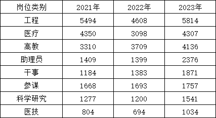 在2023年军队文职岗位计划中,助理工程师、医师、助理员的需求量是比较大的专业技术岗,其他岗位也都是专业技术岗人才。其中大部分岗位男女都适合报考。