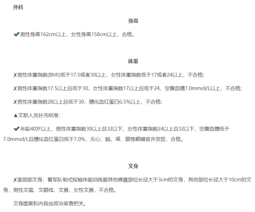 文职体检的新标准对身高要求不高,男的162cm以上,女的158cm以上就可以了,再有就是身体健康没有什么恶性病。虽说有一定的要求,但我感觉这个身体条件已经很低了,男女、高矮、胖瘦问题都不是考察的重点,所以大家可以放心!