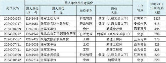 2024年军队文职报名正在进行中,各个岗位的报名人数也逐渐浮出水面。作为小编,我为大家搜集了一些岗位的报名情况,你报的岗位有多少人呢?不妨留言告诉我一下。那么,如何查看报名人数呢?
