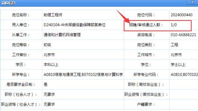 进入报名系统,查看岗位信息,右上方会显示招聘/审核人数,通过这个可以了解到已经通过审核的人数。而且告诉你个小秘密,报名后也可以在系统中查看哦!不过需要提醒的是,报名前可以看到所有岗位的报名情况,但报名后只能查看自己所报岗位的情况。关于什么时候报名合适,今年的文职公告中提到了“压减岗位计划”,因此建议大家在中期报名,这样可以先观望一下自己感兴趣的岗位的报名情况,避免冒险选择那些没有人报考的岗位。如果遇到报名人数较多的岗位,该如何选择呢?