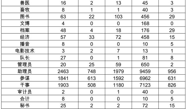 事实上,文职岗位很丰富,我们截取部分来说明。图中可见,高教、工程、医疗等招录的名额非常多。因为名额多,所以即使没人脉,有足够的能力也可以上岸,不妨尝试捡漏。