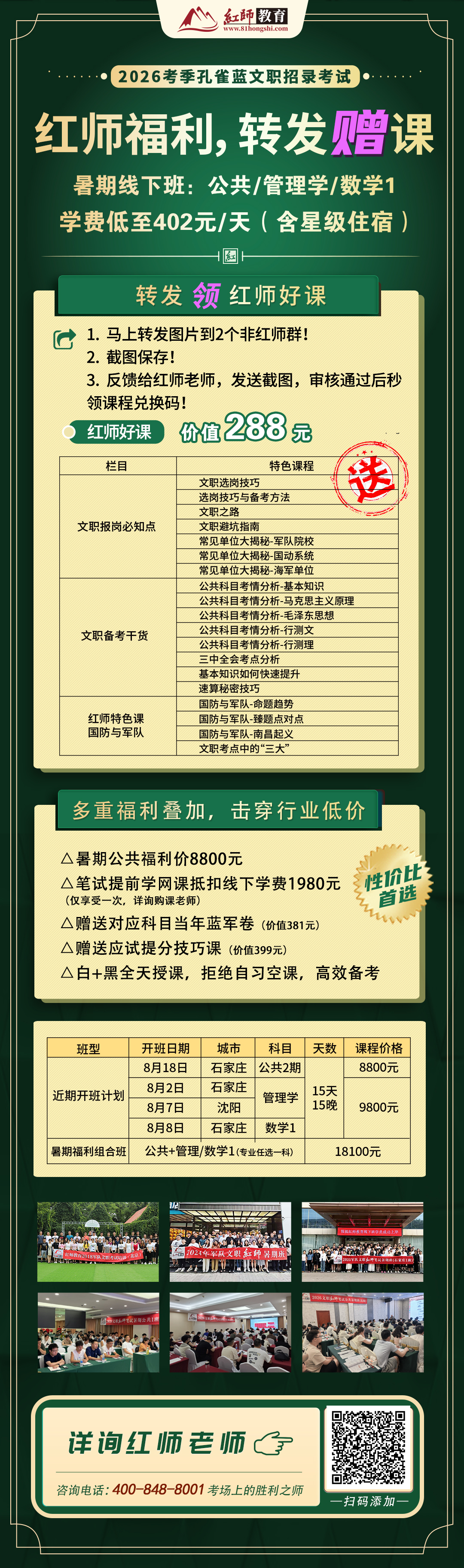 文职备考黄金期,与其被万元班“割肉”,不如抢订红师限时福利。备考选红师,上岸更稳!