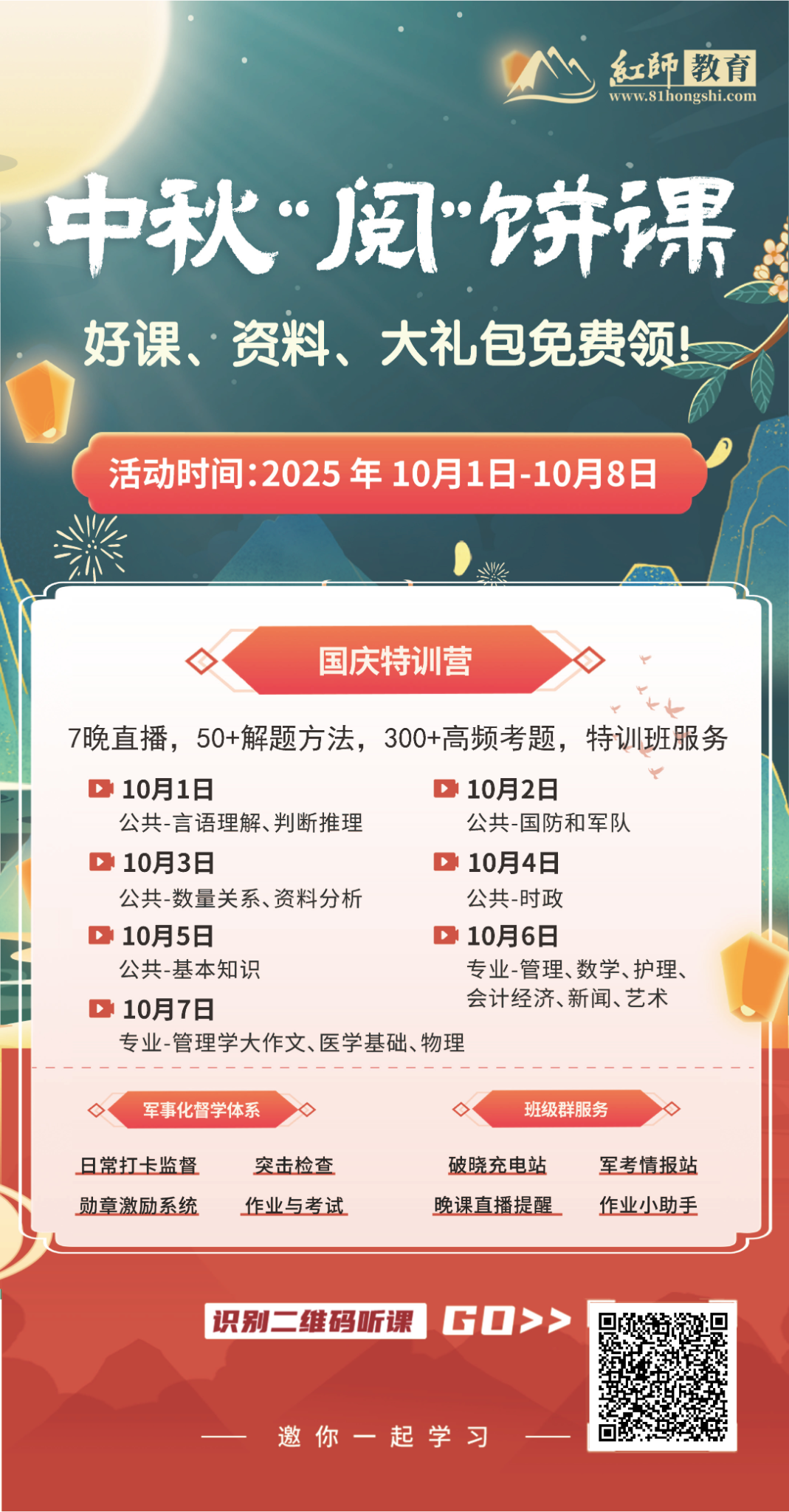不用纠结 “国庆学不学”,不用顾虑 “自学没方向”!红师教育国庆文职特训营重磅上线,0.01 元即可锁定 7 天直播课 + 全程督学服务,花一杯水的零头,get 能直接用的应试干货,备考效率翻倍!