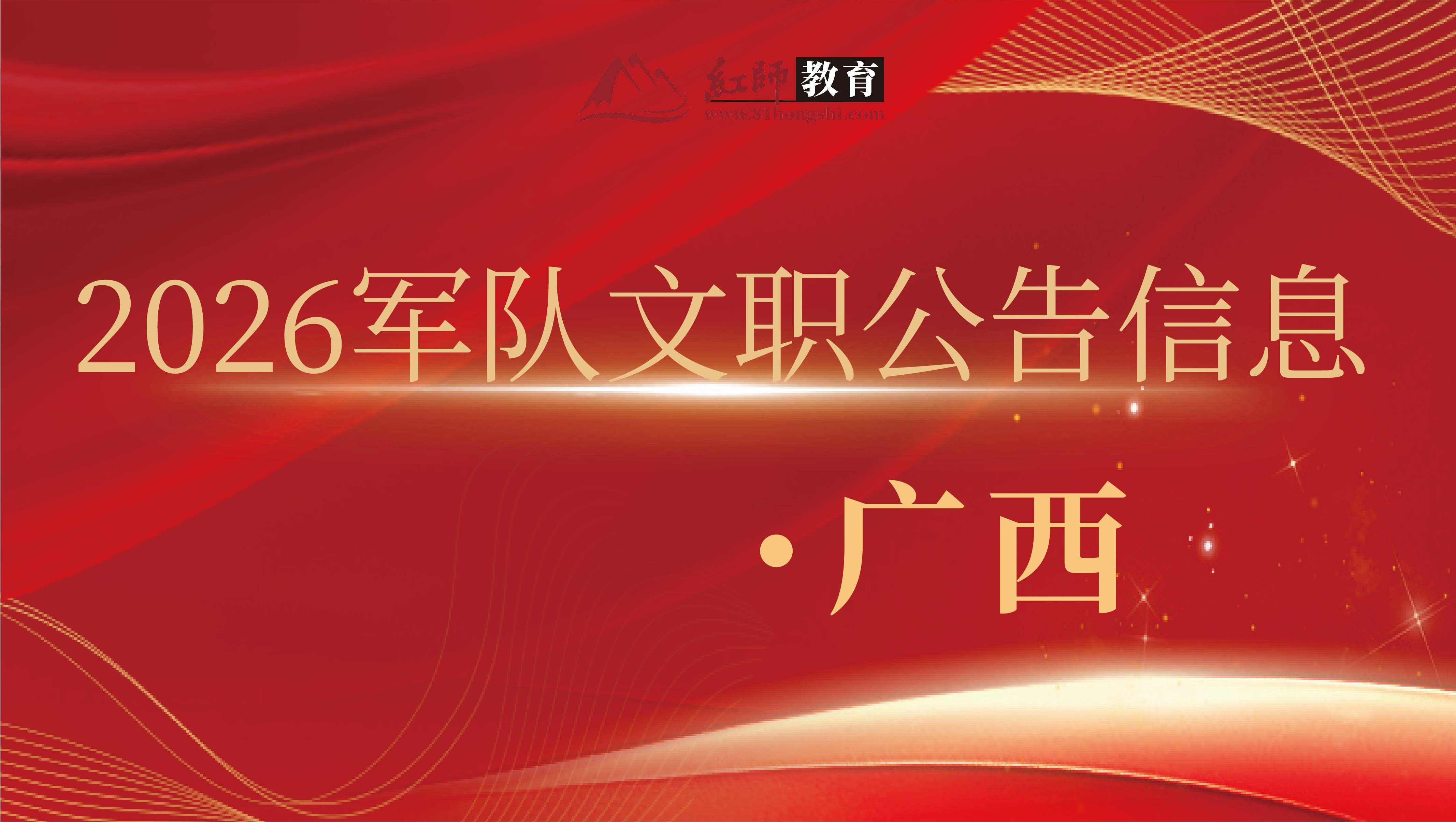 备考2026年军队文职的小伙伴们大家好!26年广西省军队文职人员招考公告已经发布,为了大家更好的了解文职招考信息,小编整理了2026年军队人才网发布的军队文职公告信息,接下来和红师教育小编一起来看看2026年广西省军队文职人员招考公告吧:
