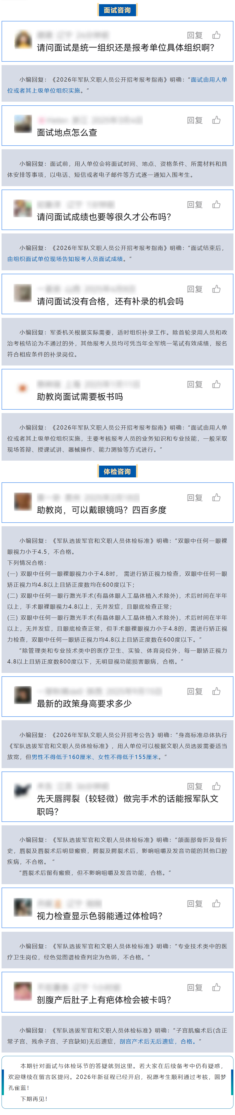 《2026年军队文职人员公开招考公告》明确,公开招考笔试成绩将于本月底左右正式公布。成绩发布后,面试、体检等工作将陆续展开。为帮助大家精准把握后续有关问题,我们整理了本期“答考生问”,供您参考。