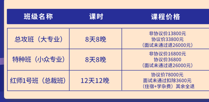 班型明码标价,协议班退费有保障: