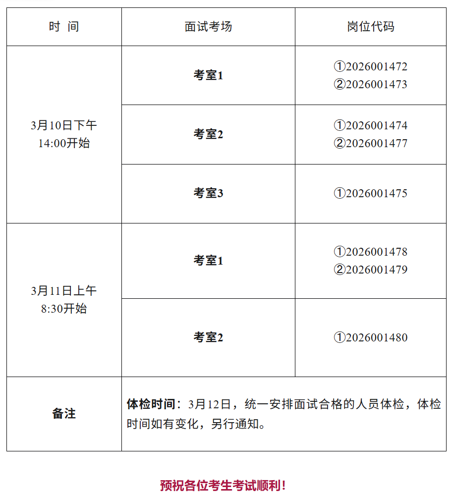 面试、体检时间安排
