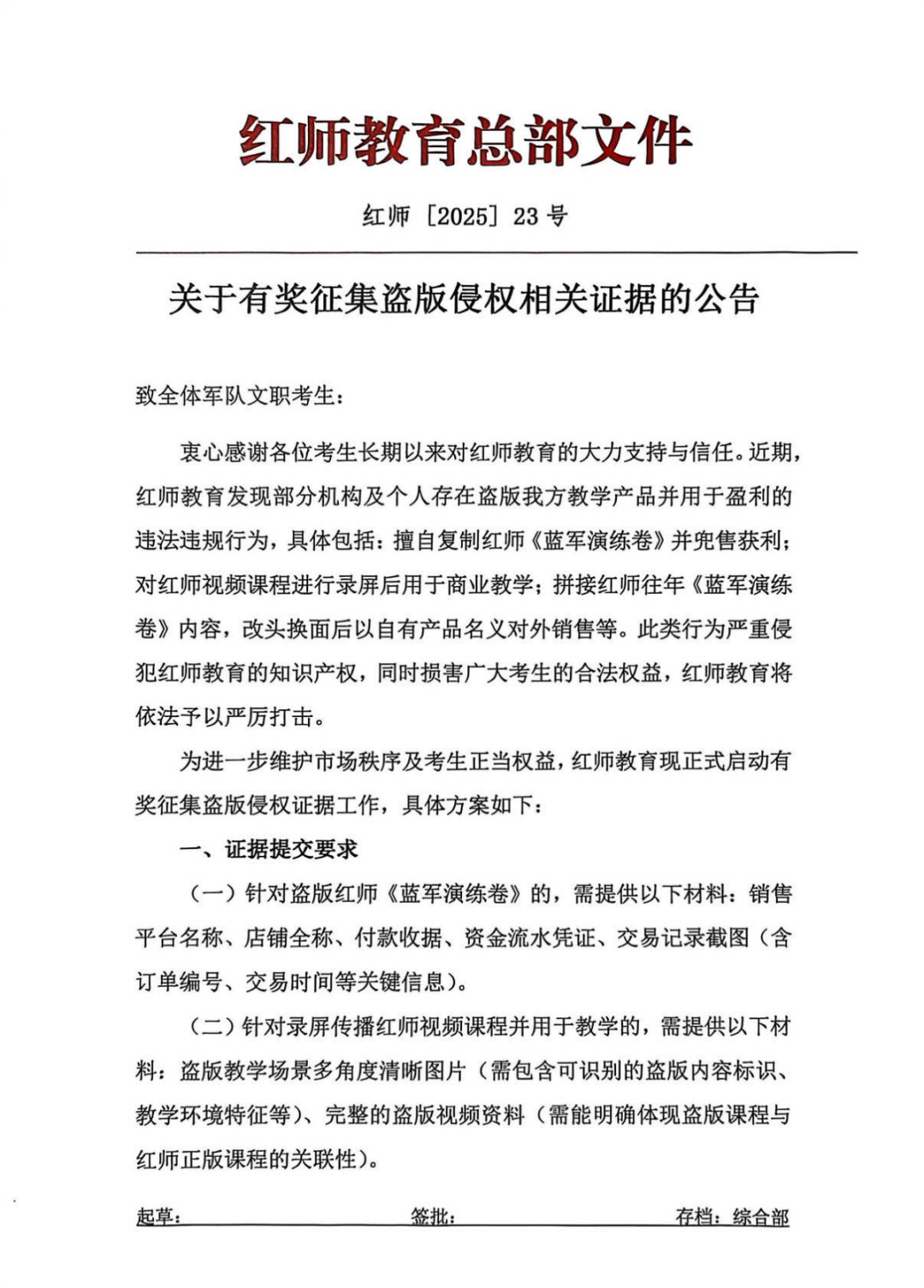 红师教育丨关于有奖征集盗版侵权相关证据的公告 2025-11-25