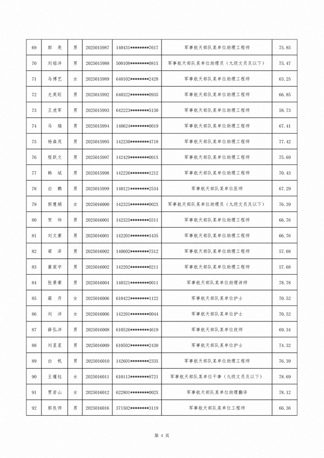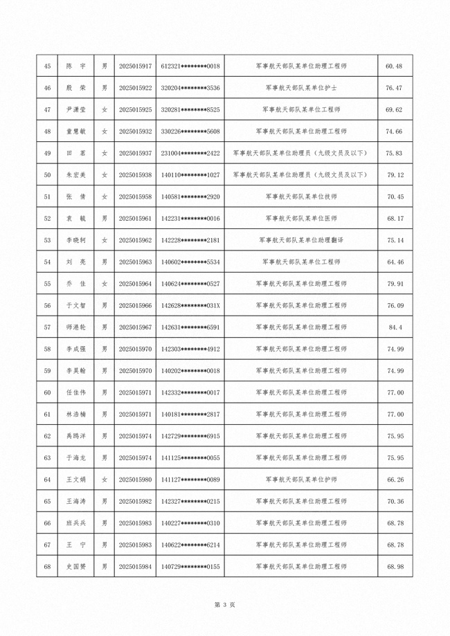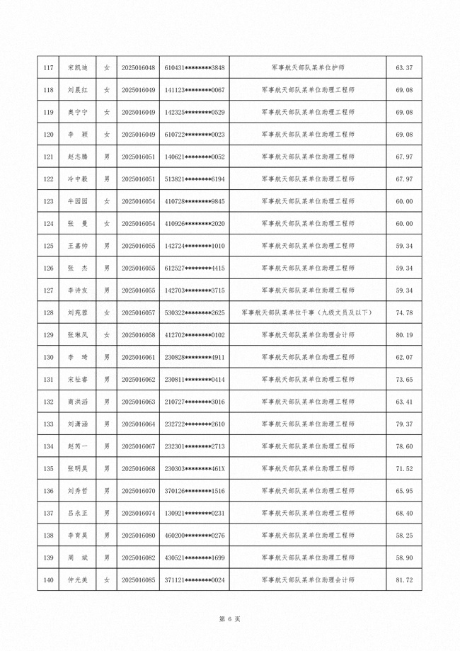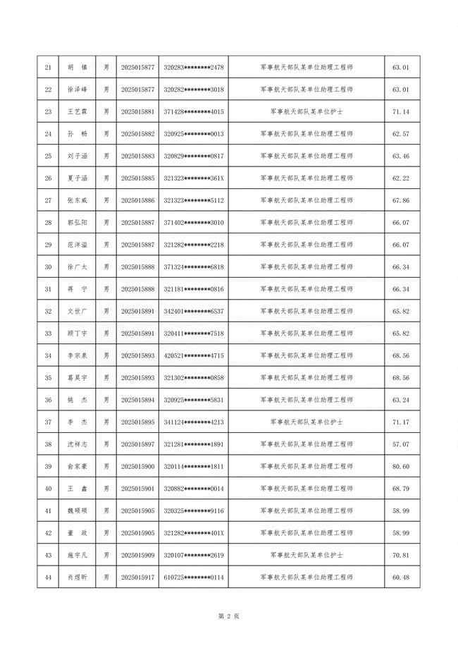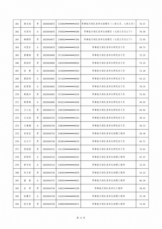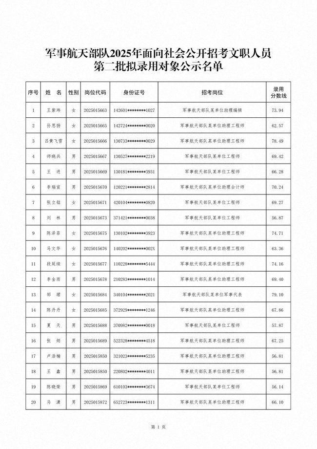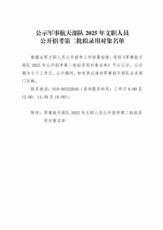 原文标题:公示军事航天部队2025年文职人员公开招考第二批拟录用对象名单