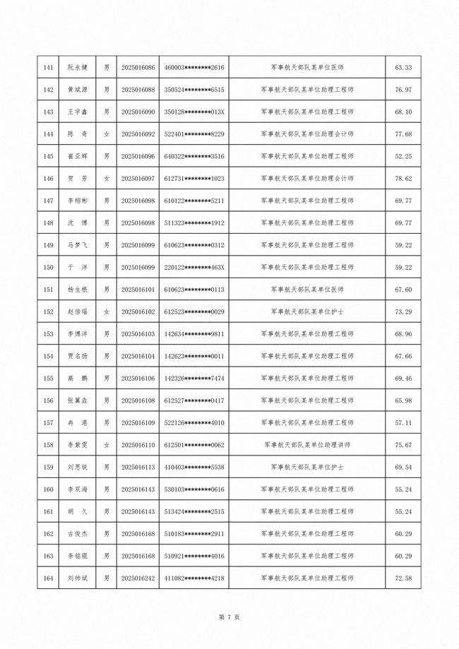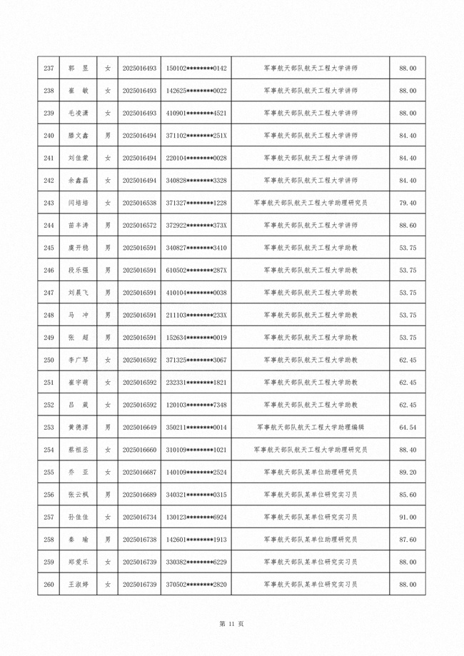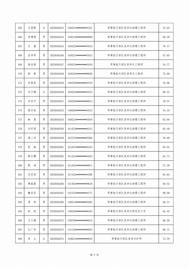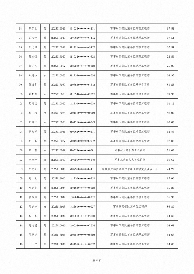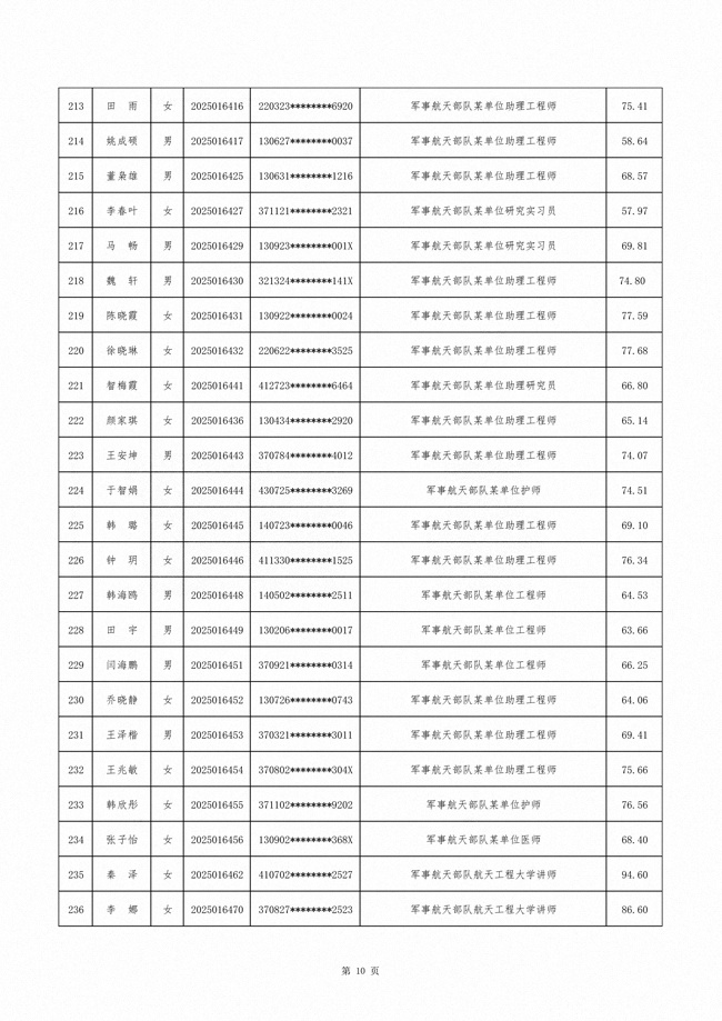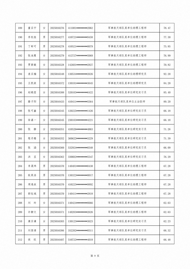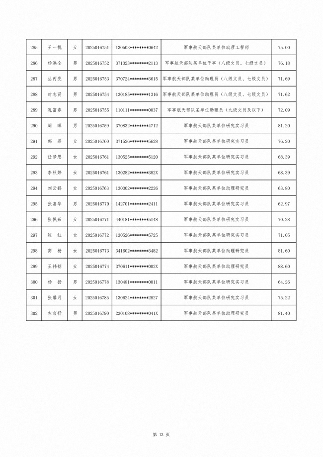 原文标题:公示军事航天部队2025年文职人员公开招考第二批拟录用对象名单
