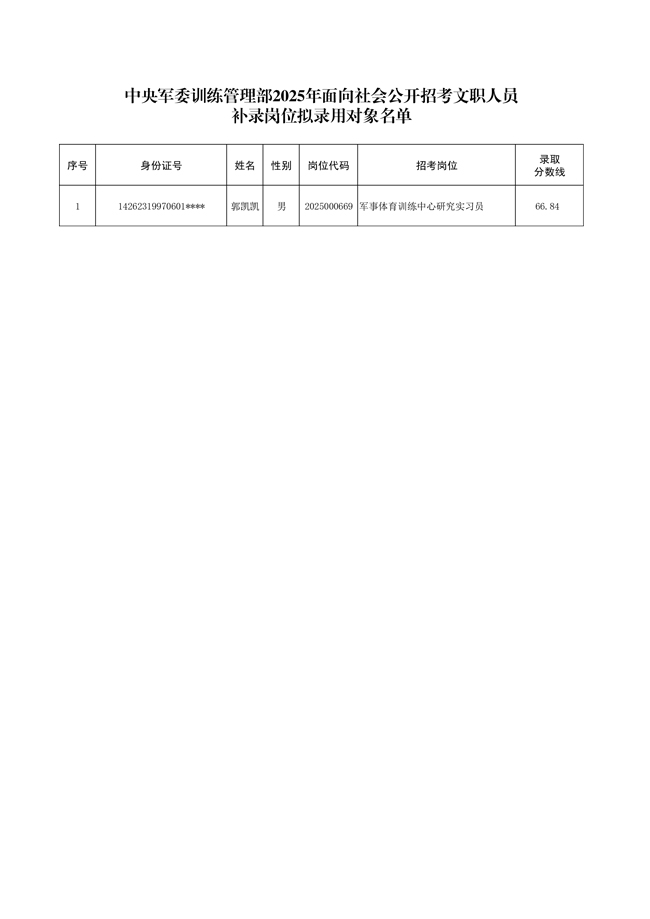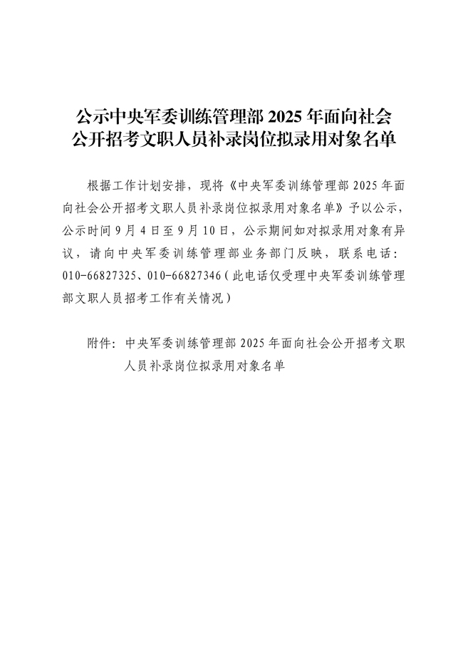 原文标题:公示中央军委训练管理部2025年面向社会公开招考文职人员补录岗位拟录用对象名单