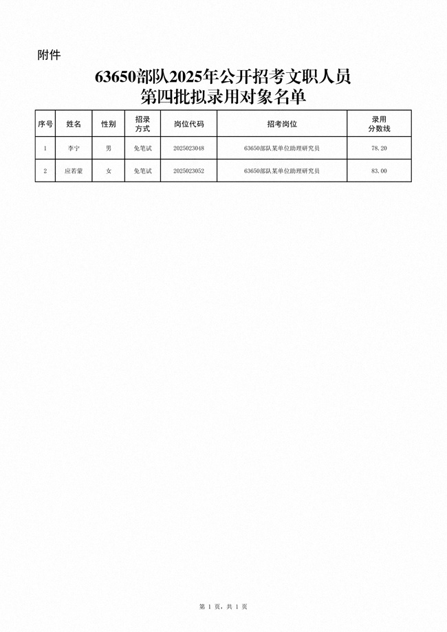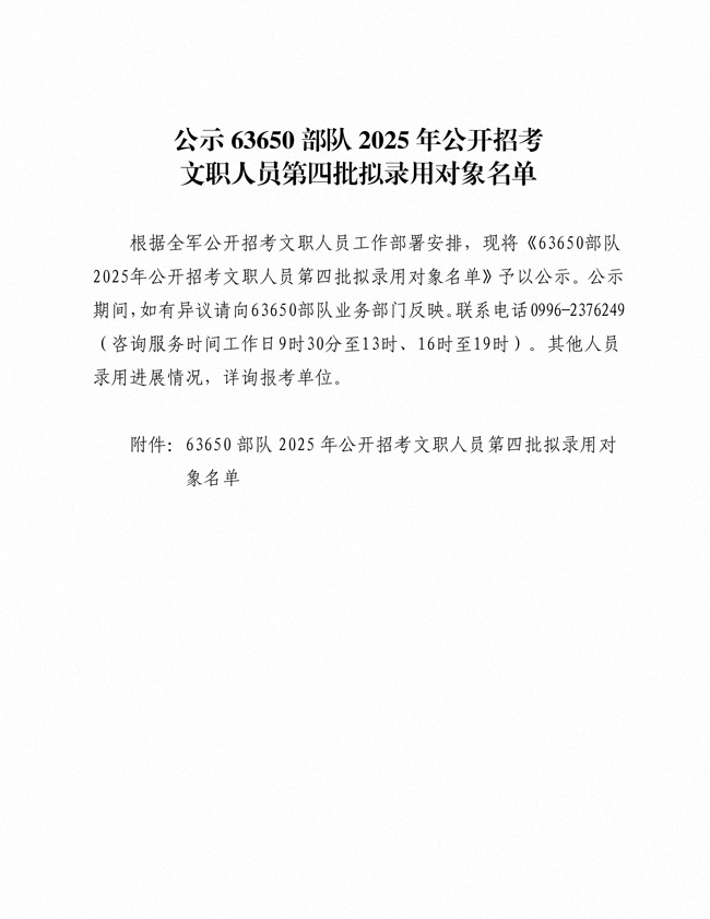 原文标题:公示63650部队2025年公开招考文职人员第四批拟录用对象名单