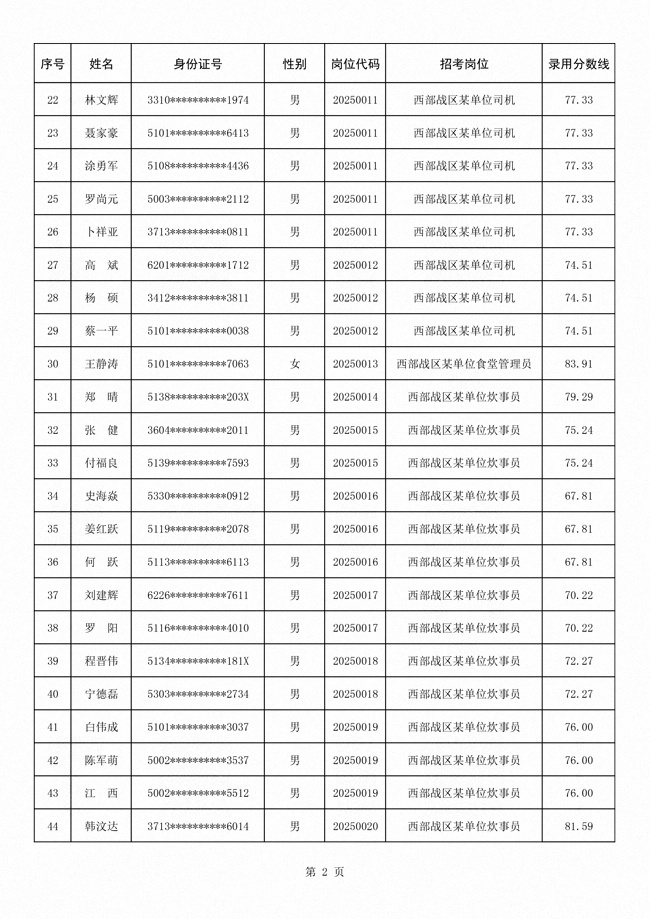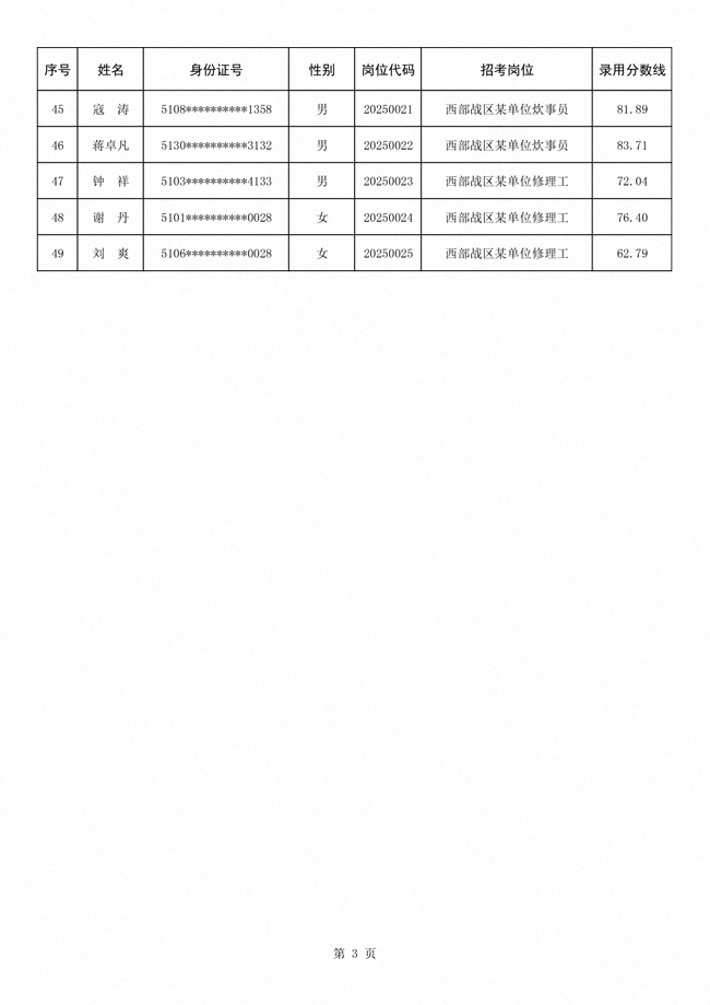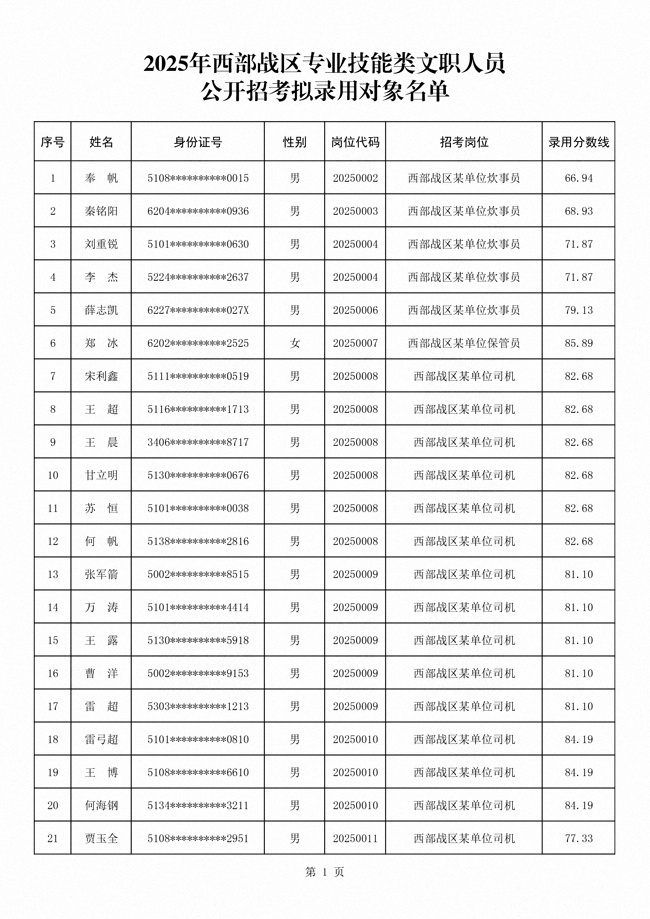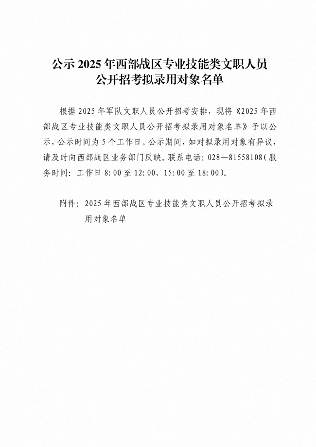 原文标题:公示2025年西部战区专业技能类文职人员公开招考拟录用对象名单