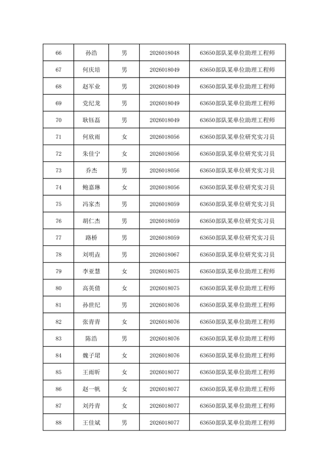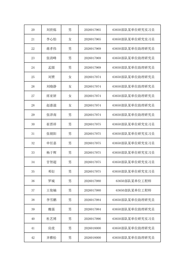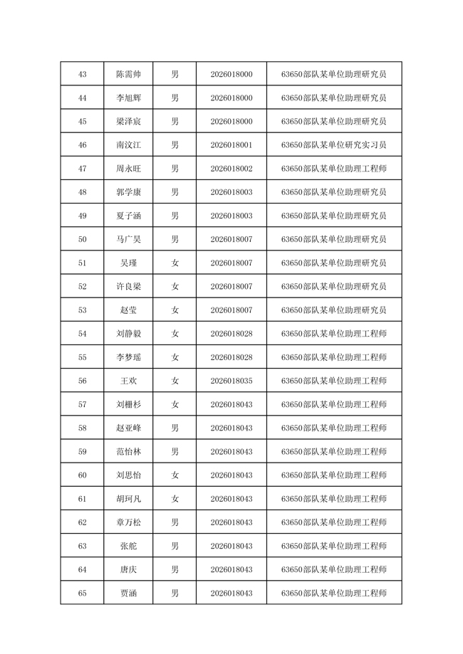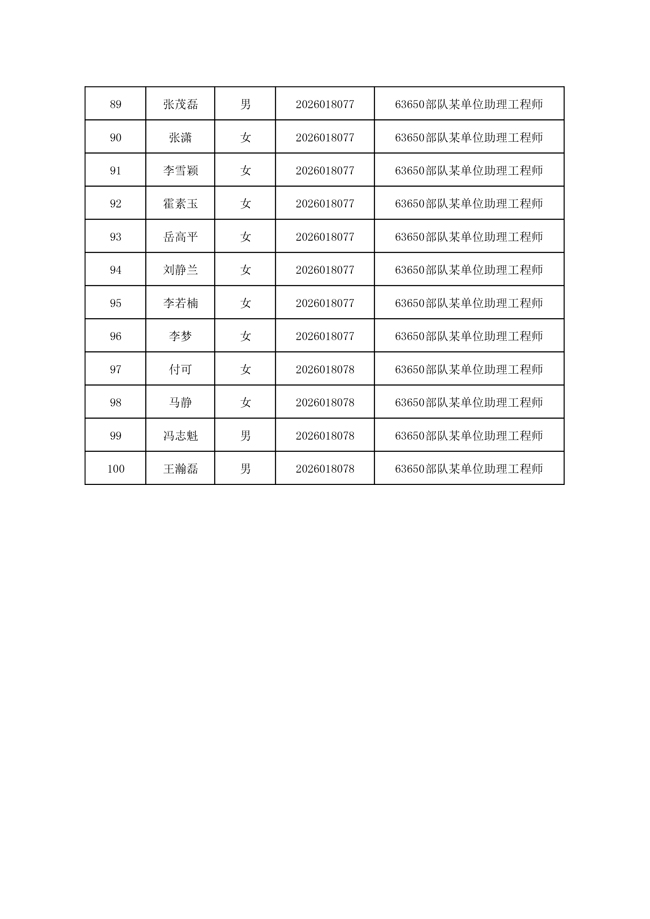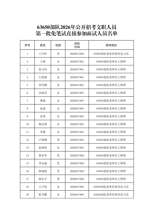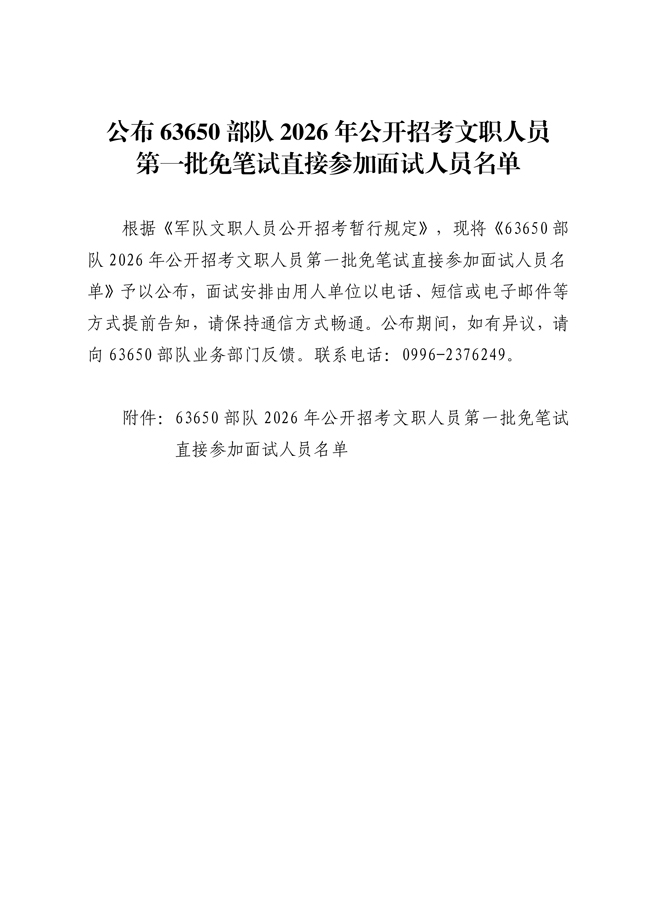 原文标题:公布63650部队2026年公开招考文职人员第一批免笔试直接参加面试人员名单