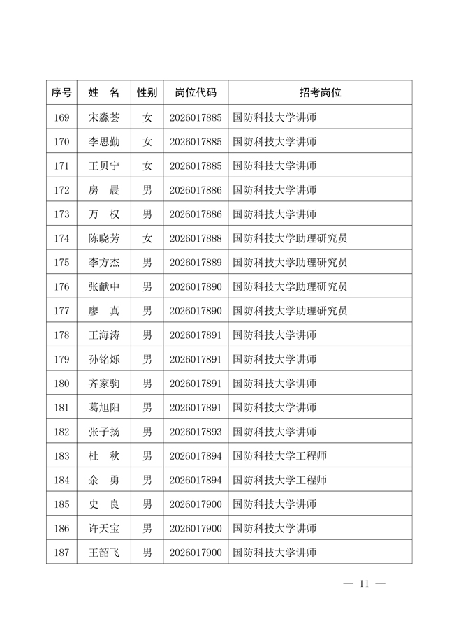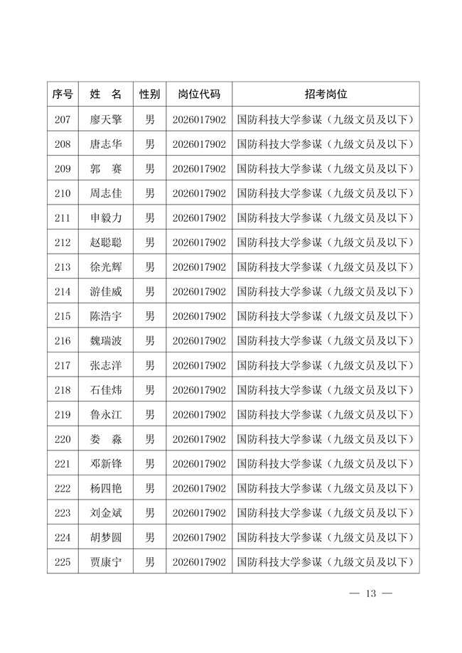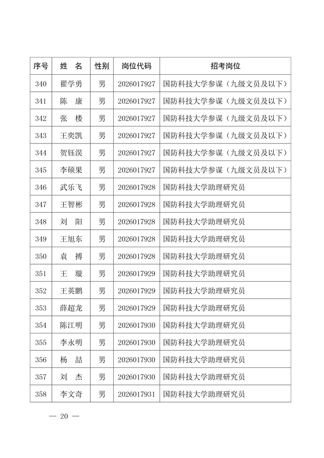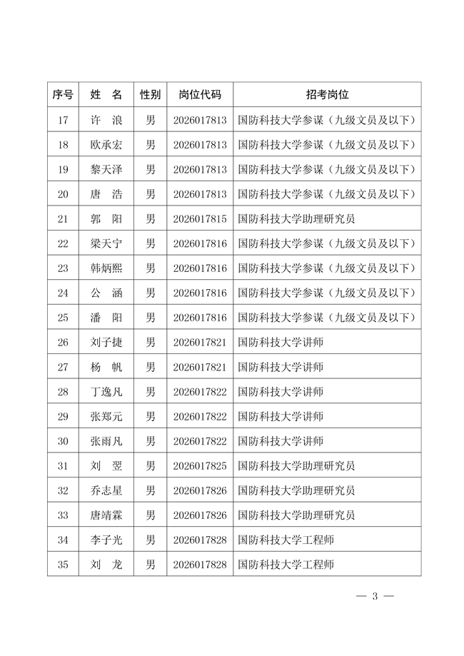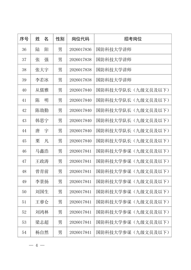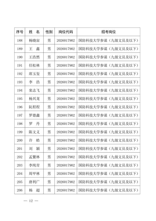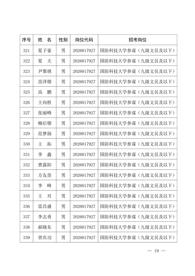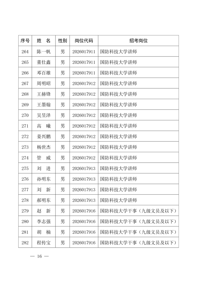 原文标题:公示国防科技大学2026年军队文职人员公开招考免笔试直接面试人员名单