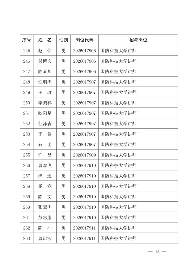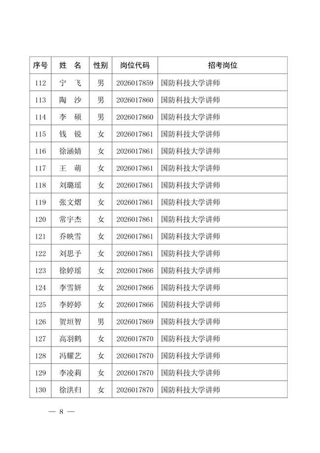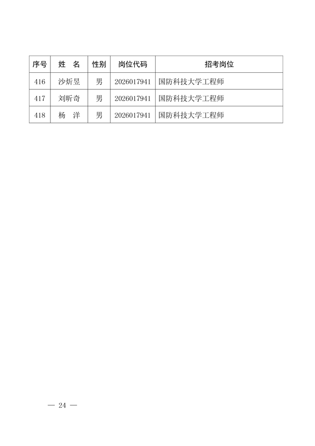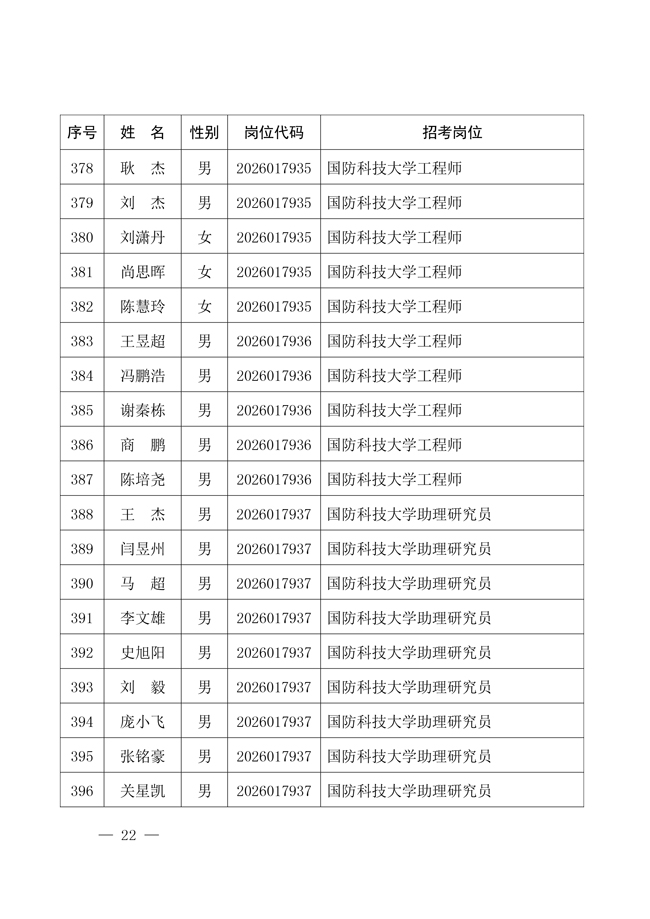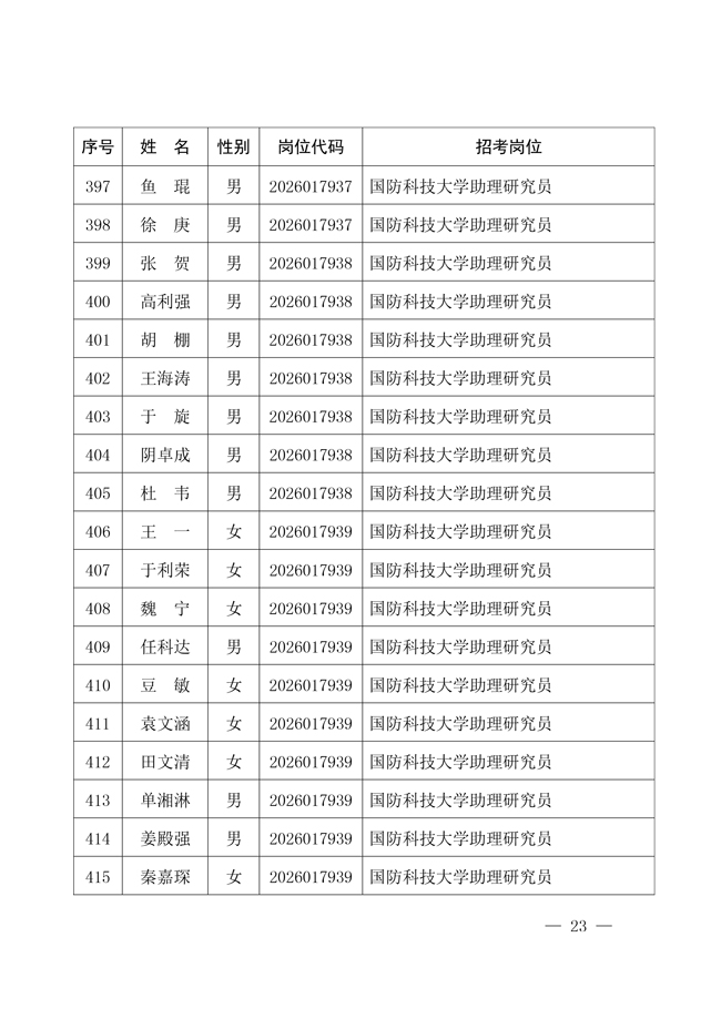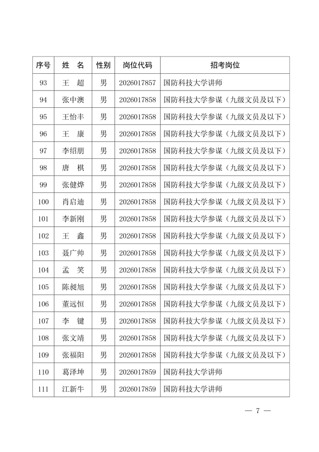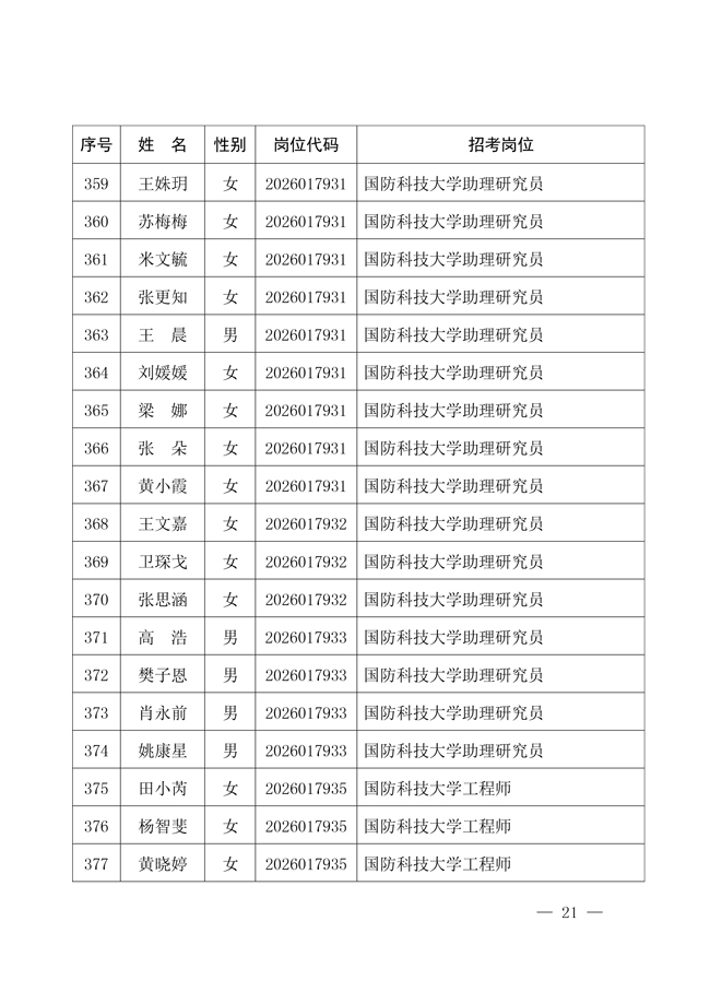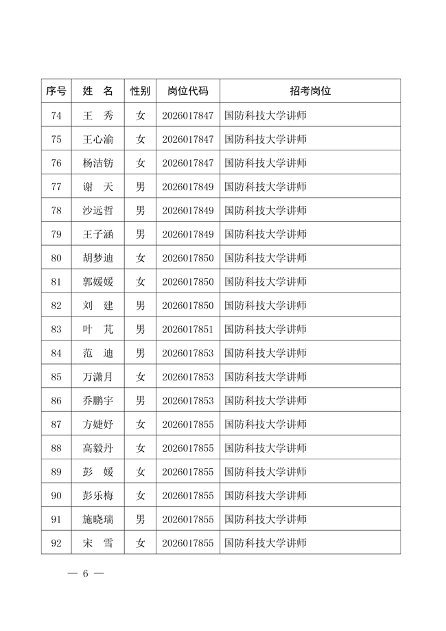 原文标题:公示国防科技大学2026年军队文职人员公开招考免笔试直接面试人员名单