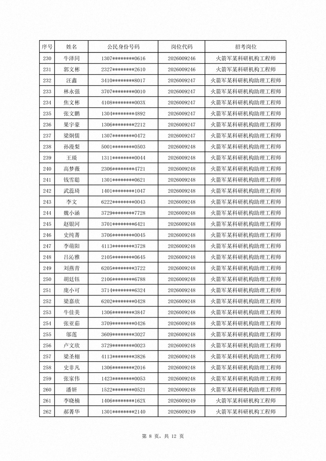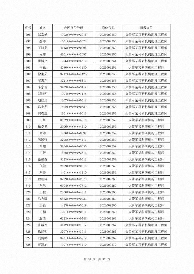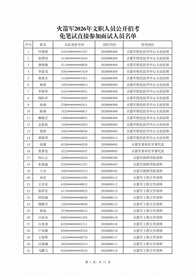 原文标题:公布火箭军2026年文职人员公开招考 免笔试直接参加面试人员名单