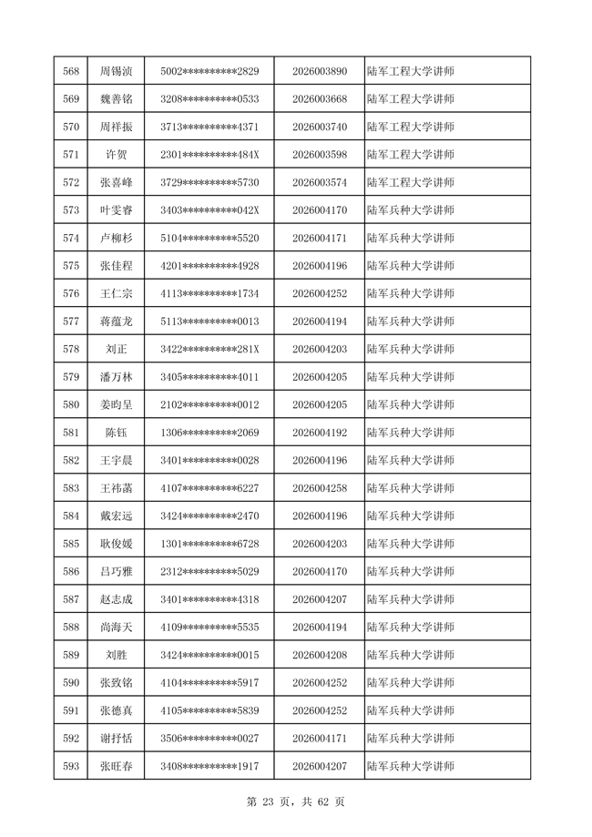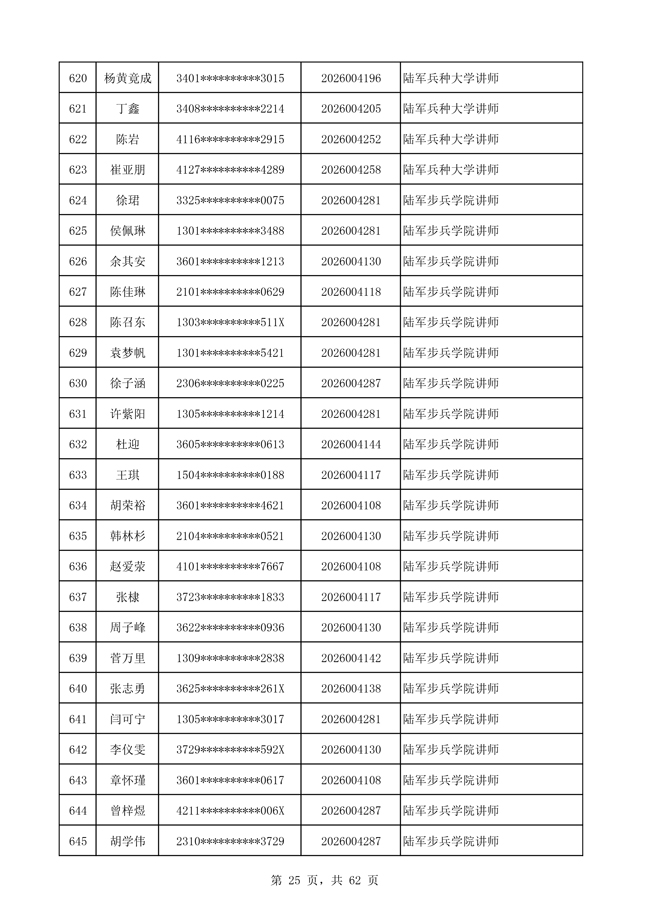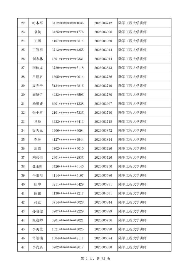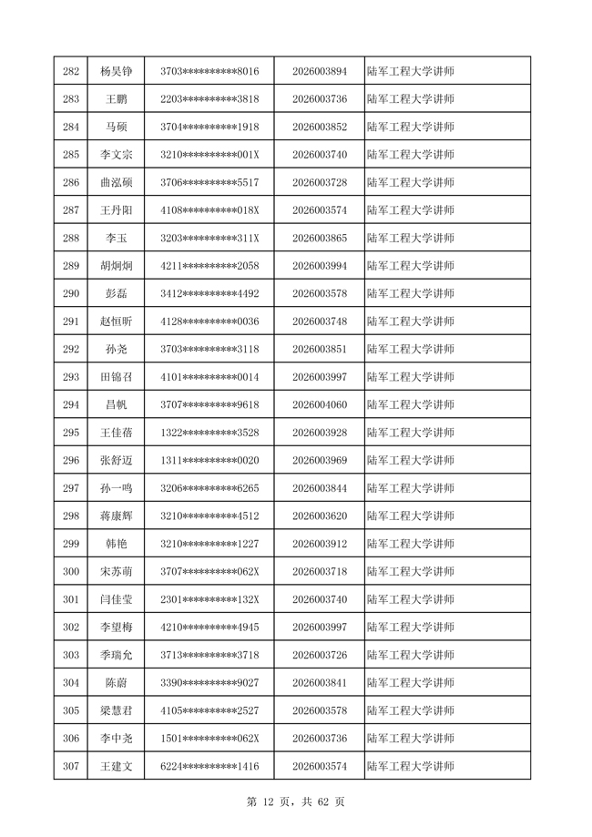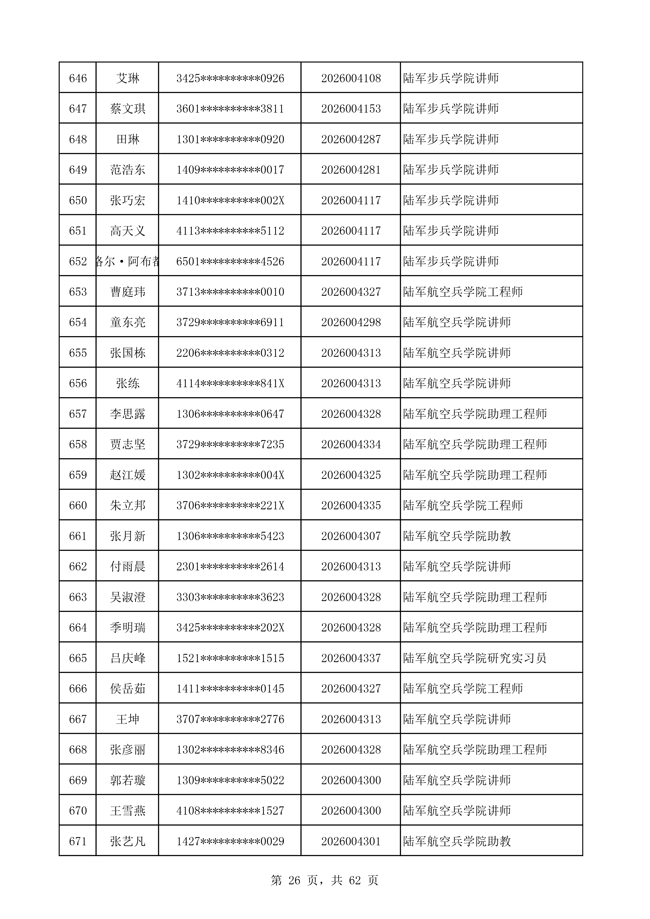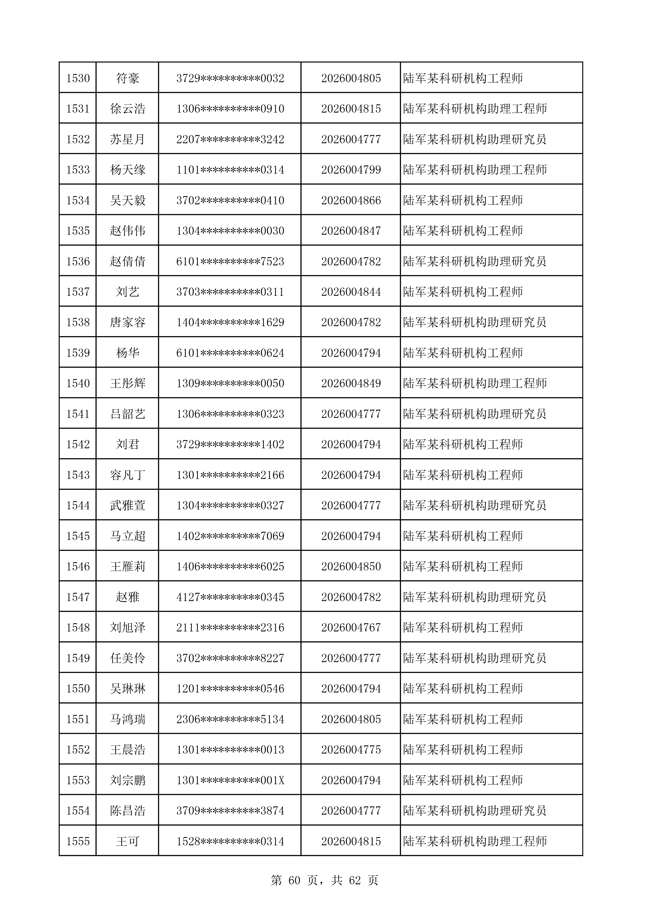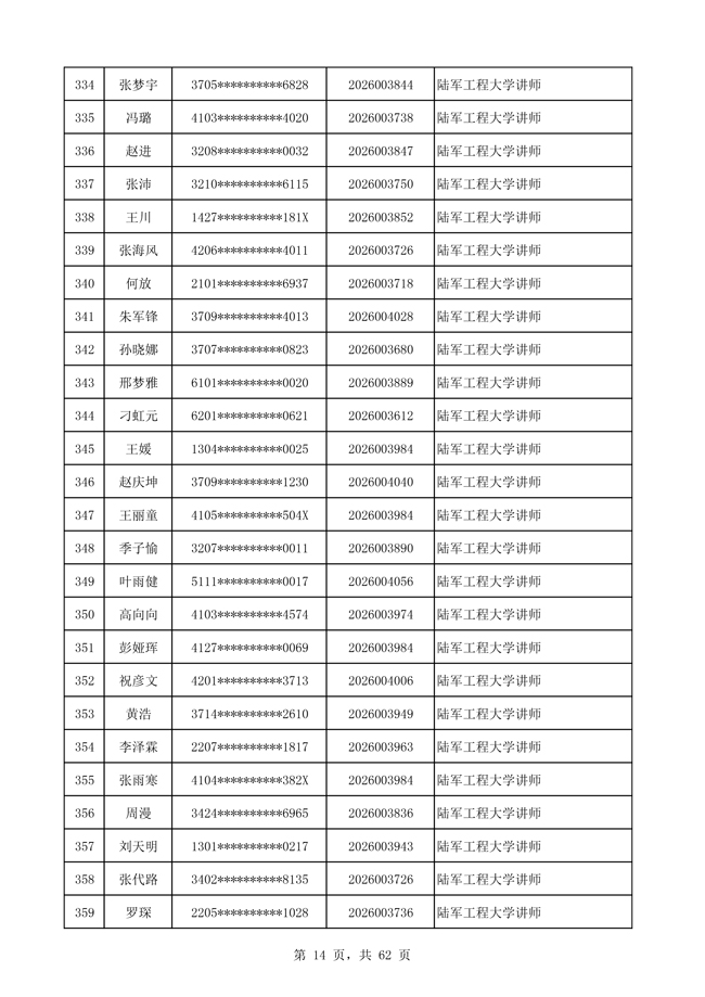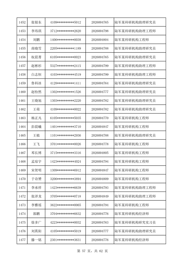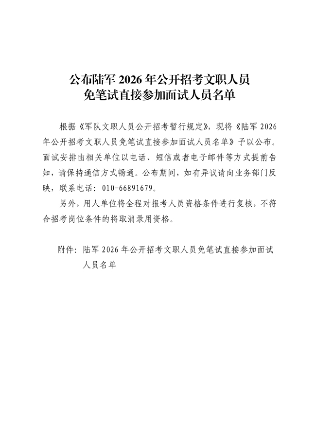 原文标题:公布陆军2026年公开招考文职人员免笔试直接参加面试人员名单