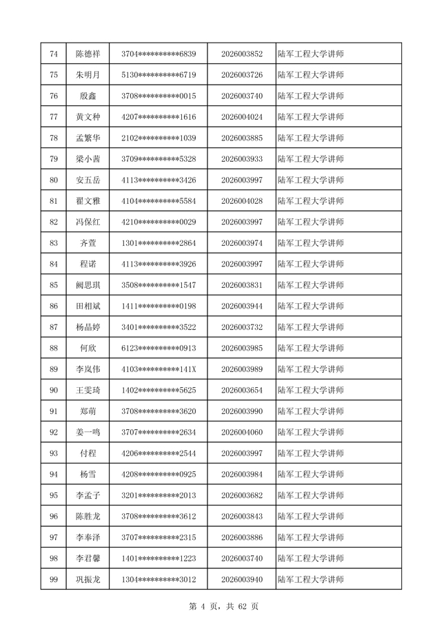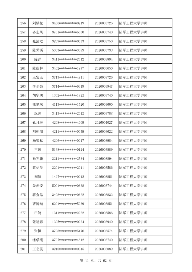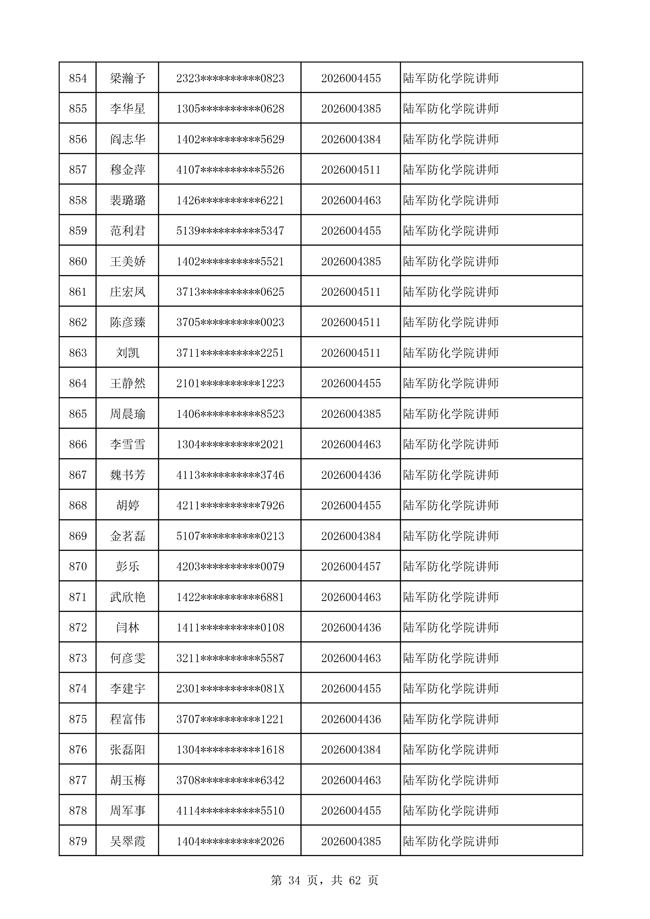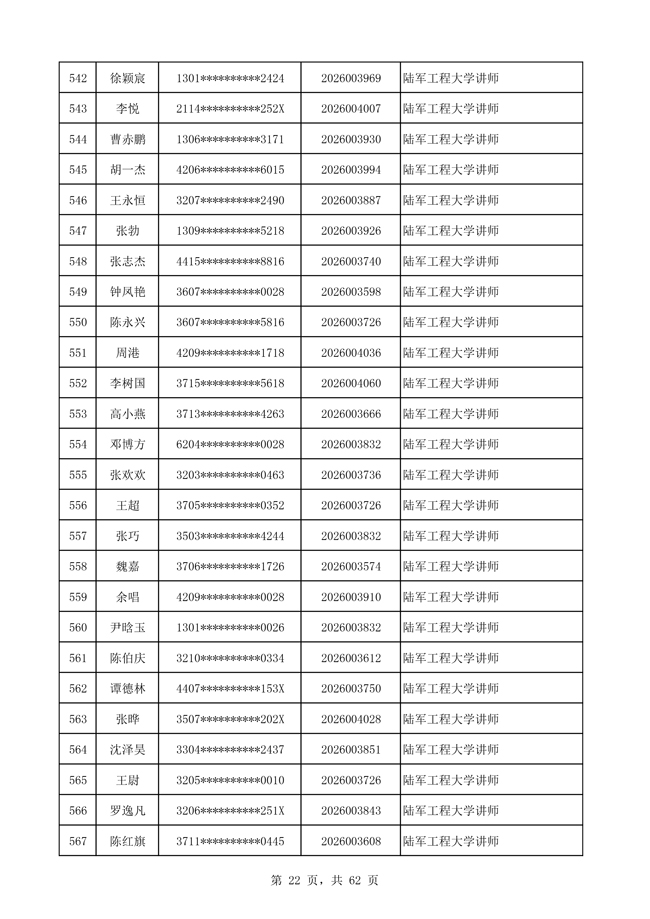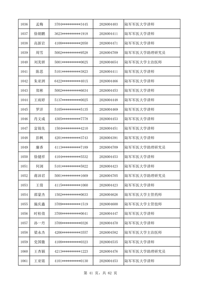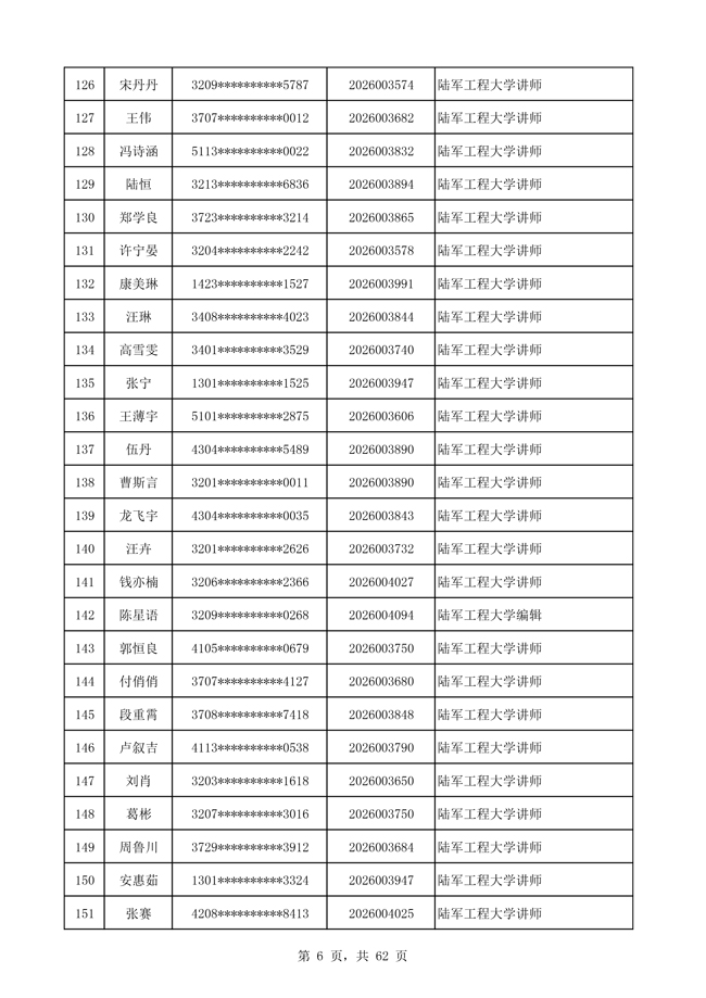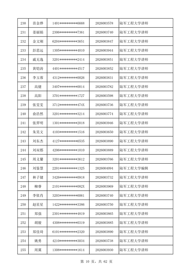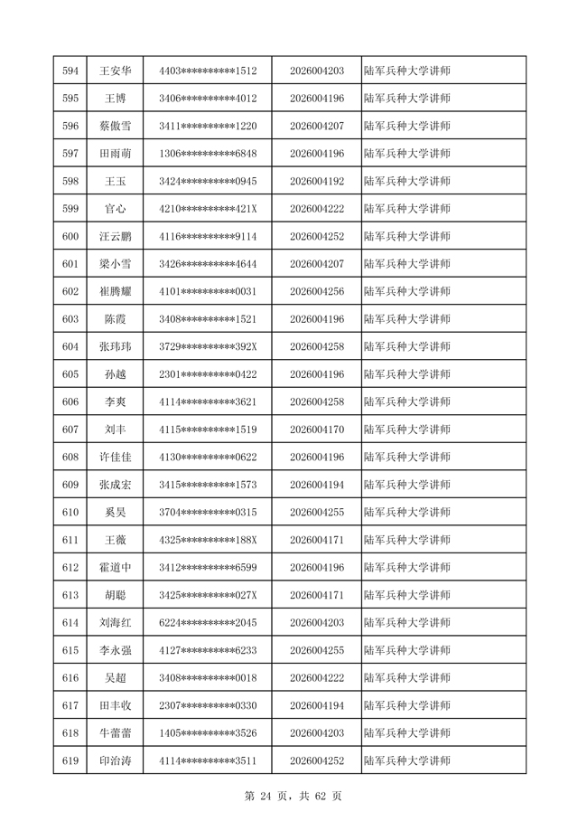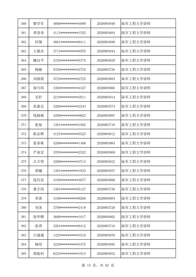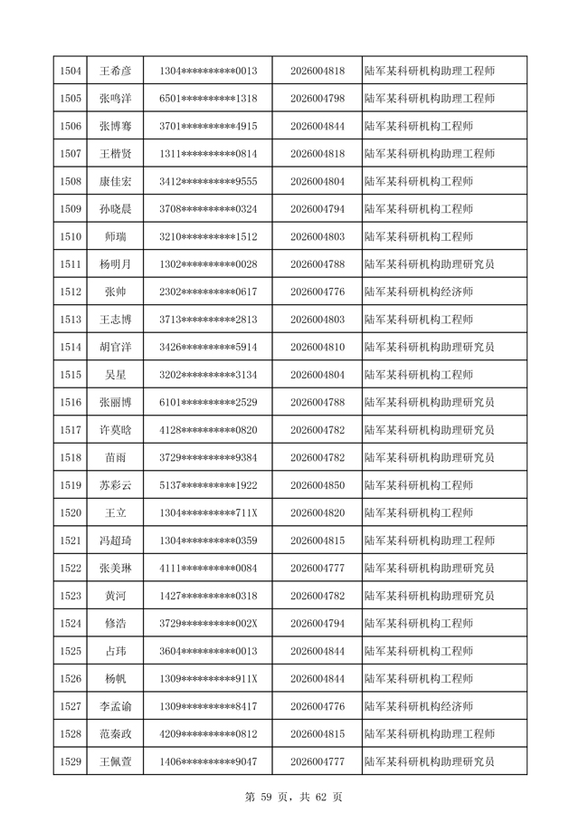 原文标题:公布陆军2026年公开招考文职人员免笔试直接参加面试人员名单