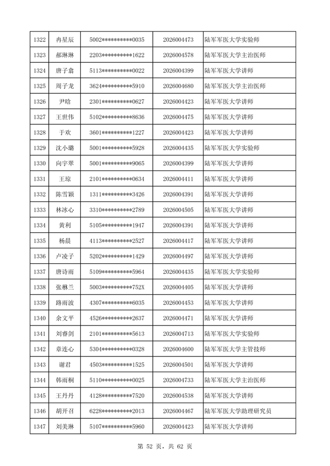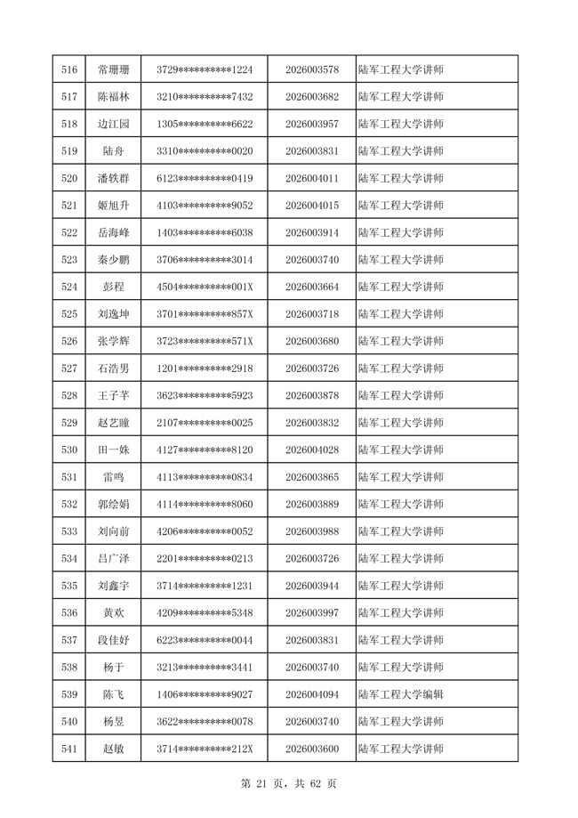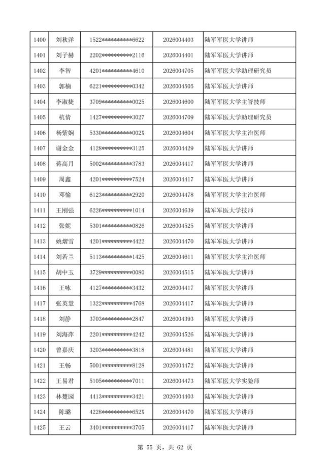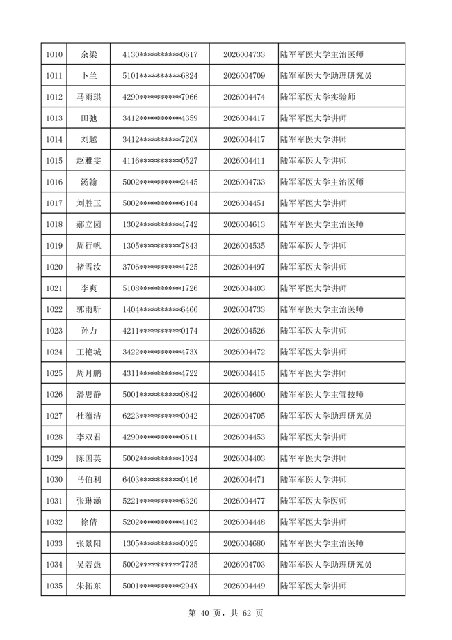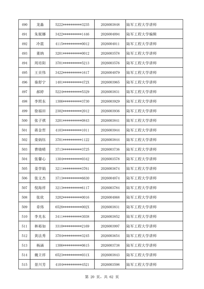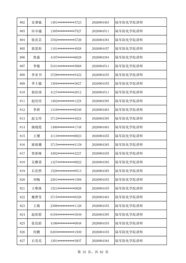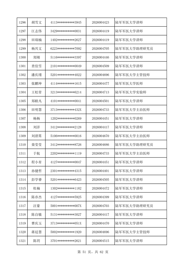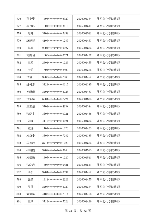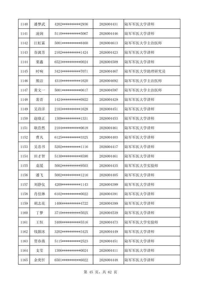 原文标题:公布陆军2026年公开招考文职人员免笔试直接参加面试人员名单