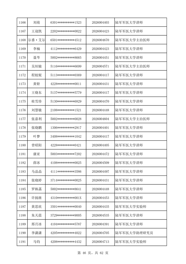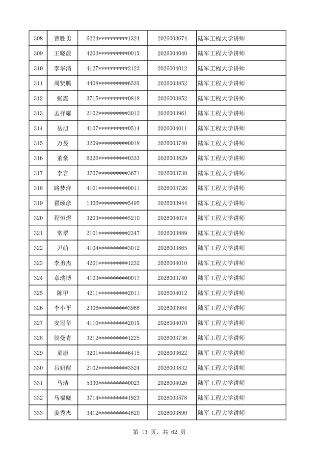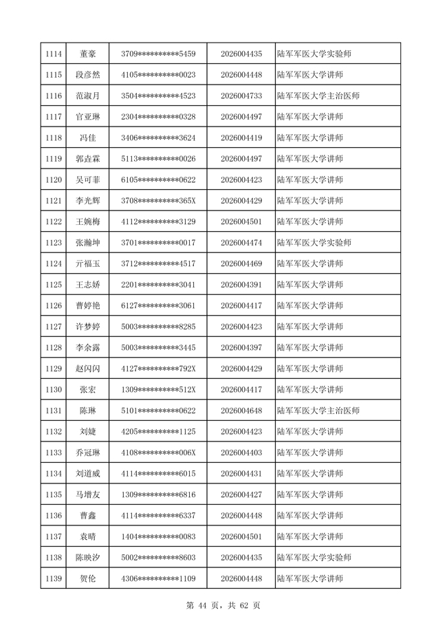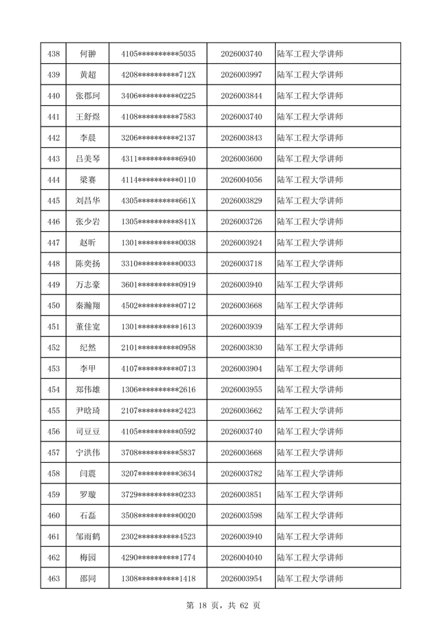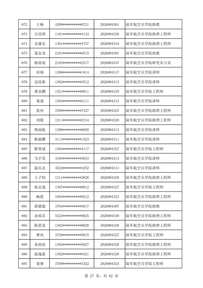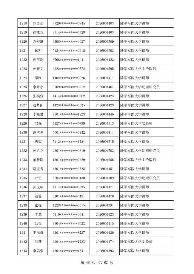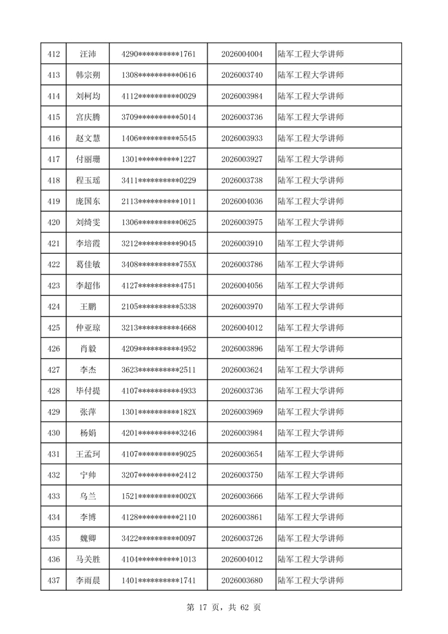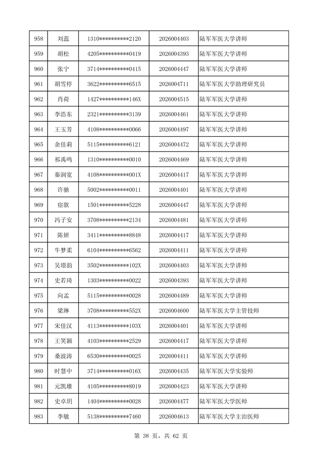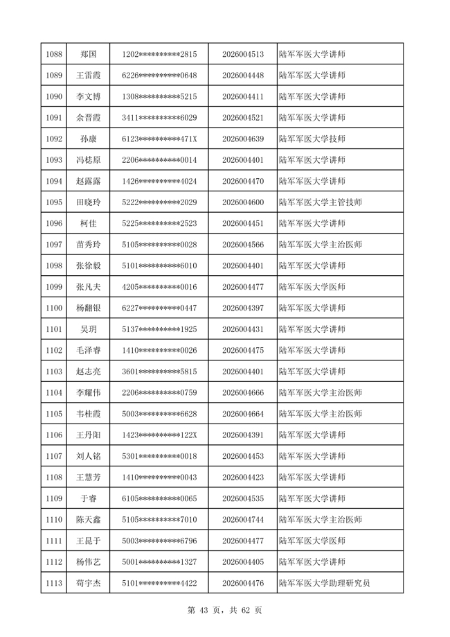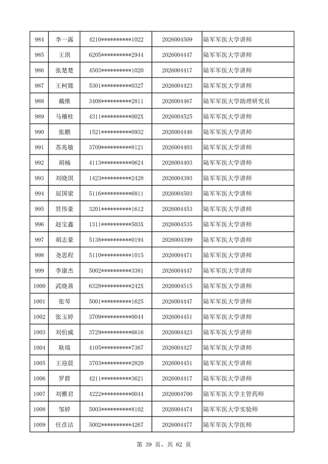 原文标题:公布陆军2026年公开招考文职人员免笔试直接参加面试人员名单