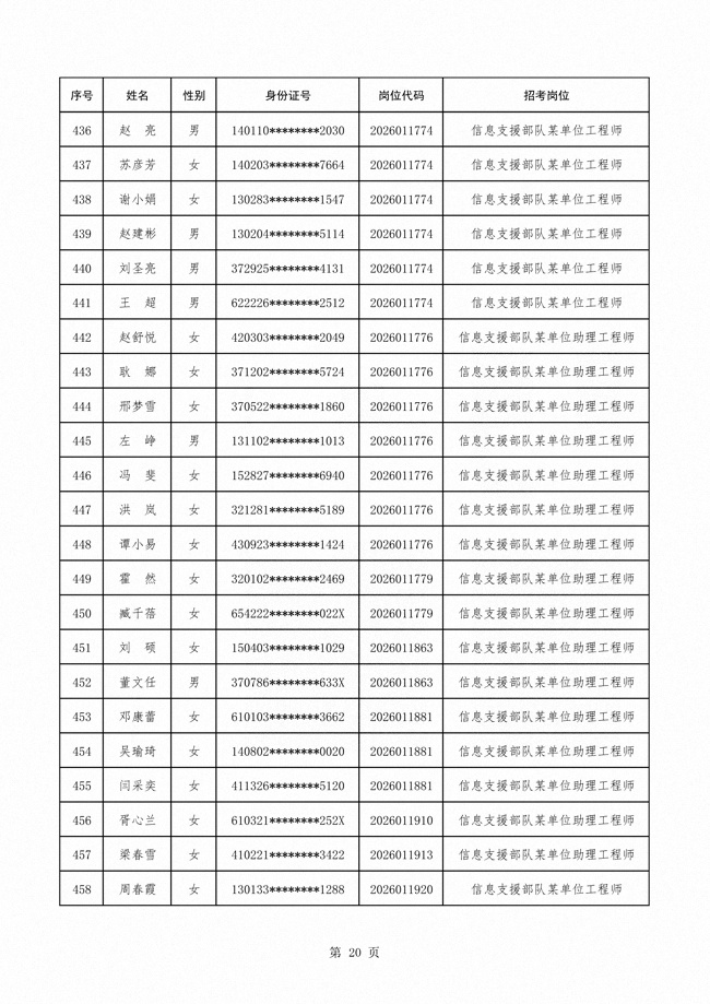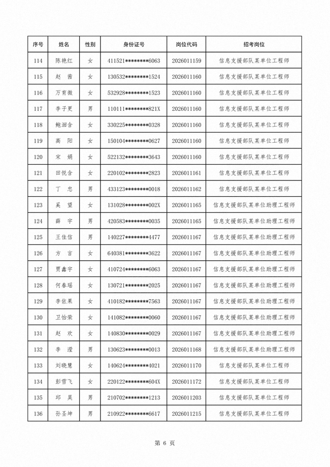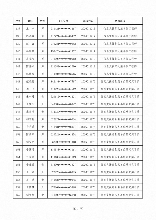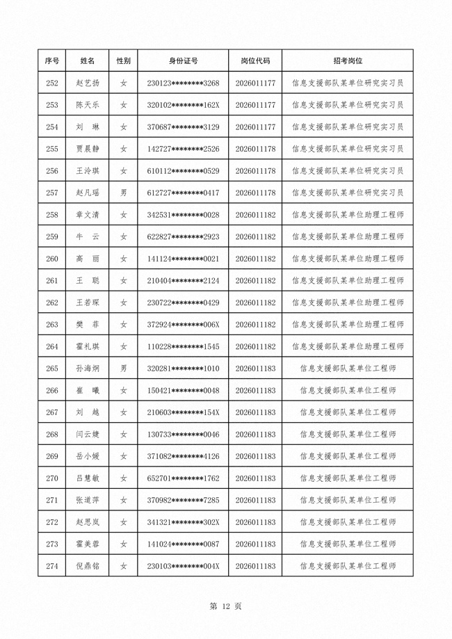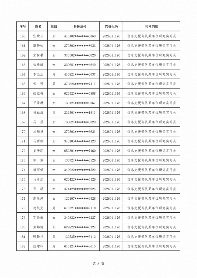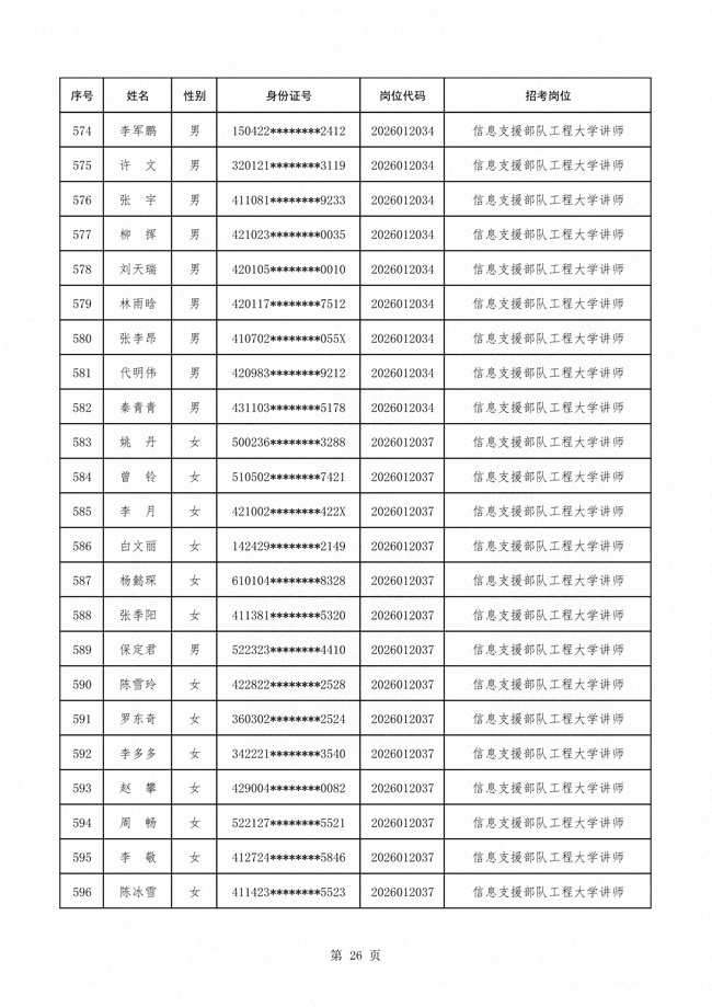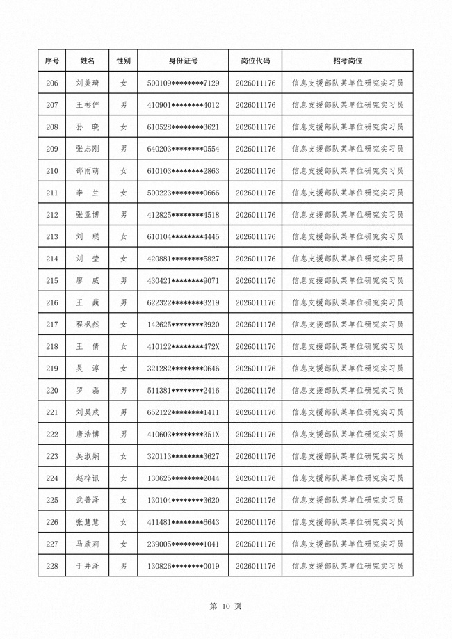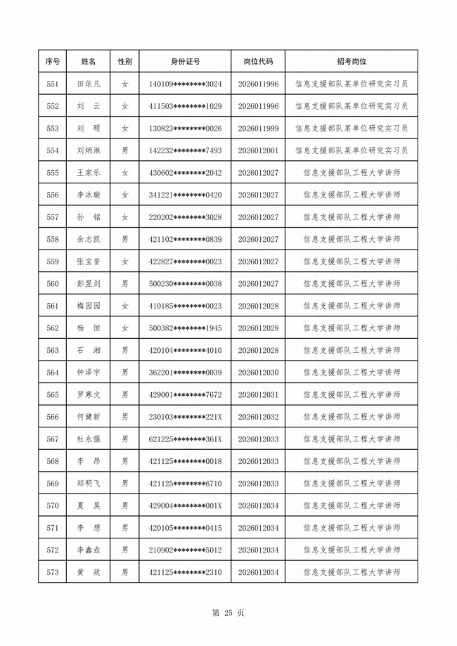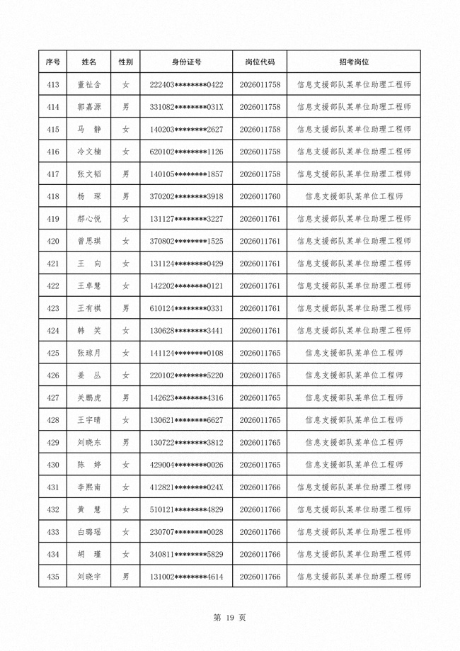 原文标题:公布信息支援部队2026年公开招考文职人员 第一批免笔试直接参加面试人员名单