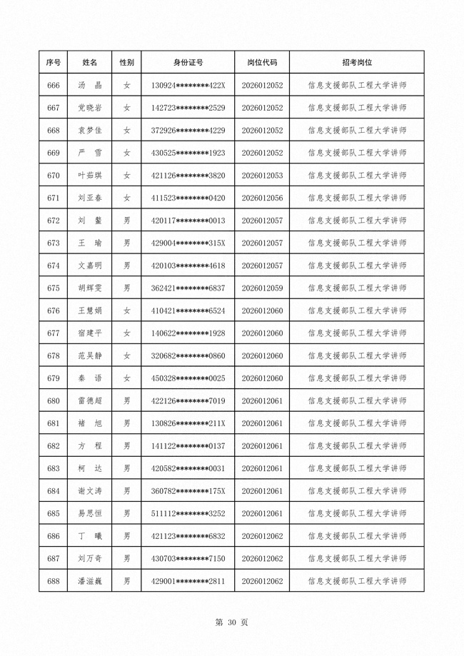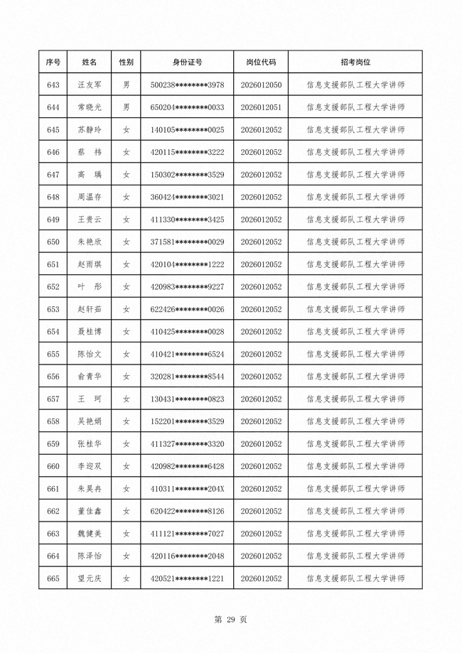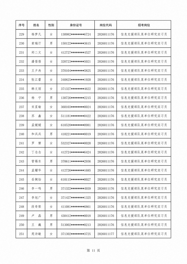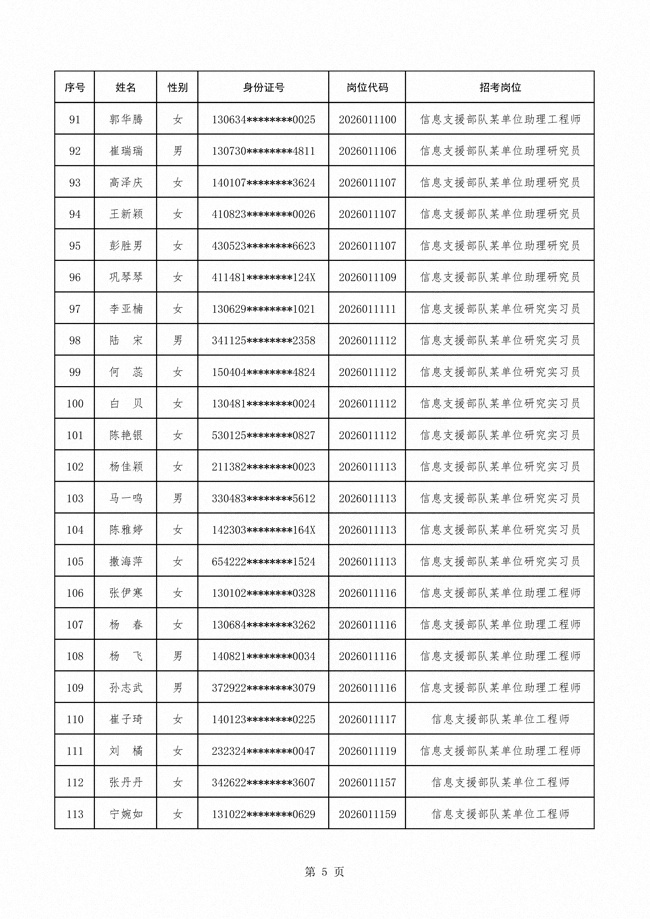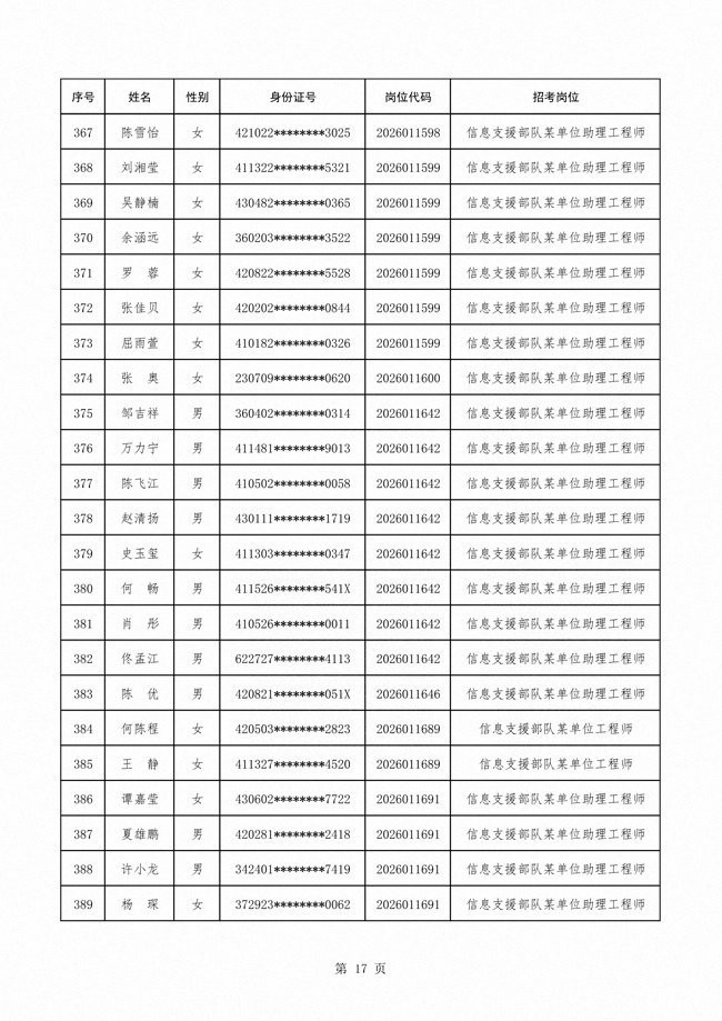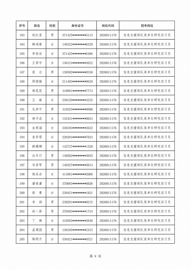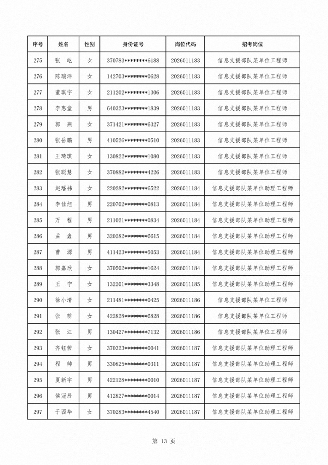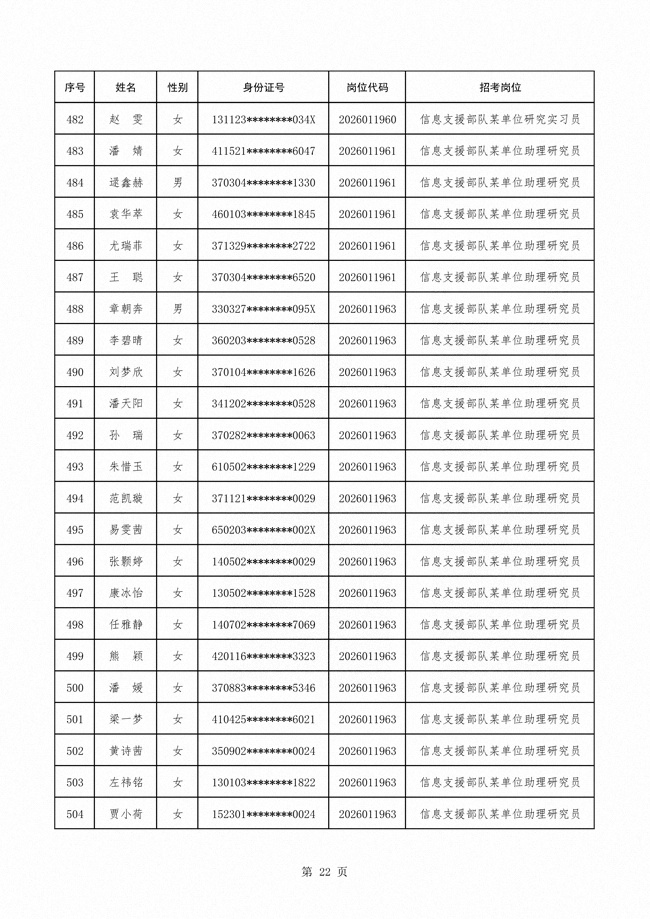 原文标题:公布信息支援部队2026年公开招考文职人员 第一批免笔试直接参加面试人员名单