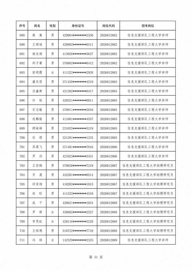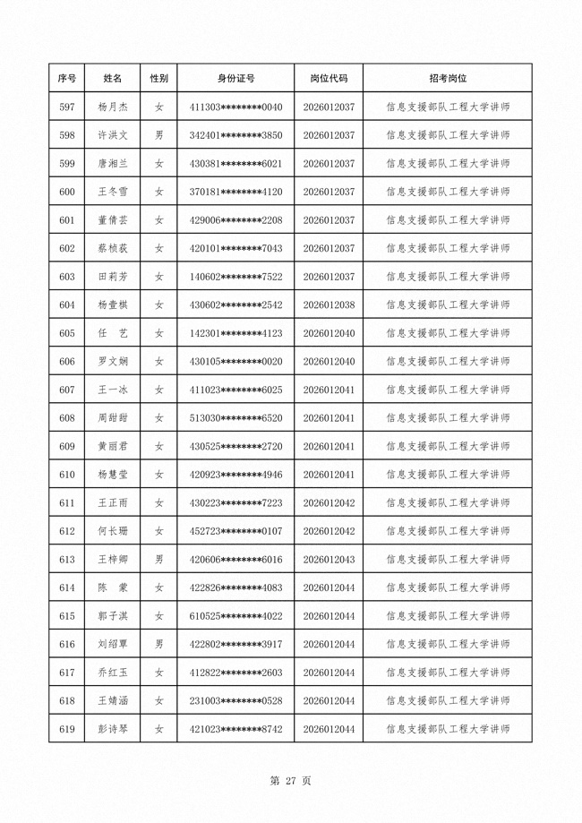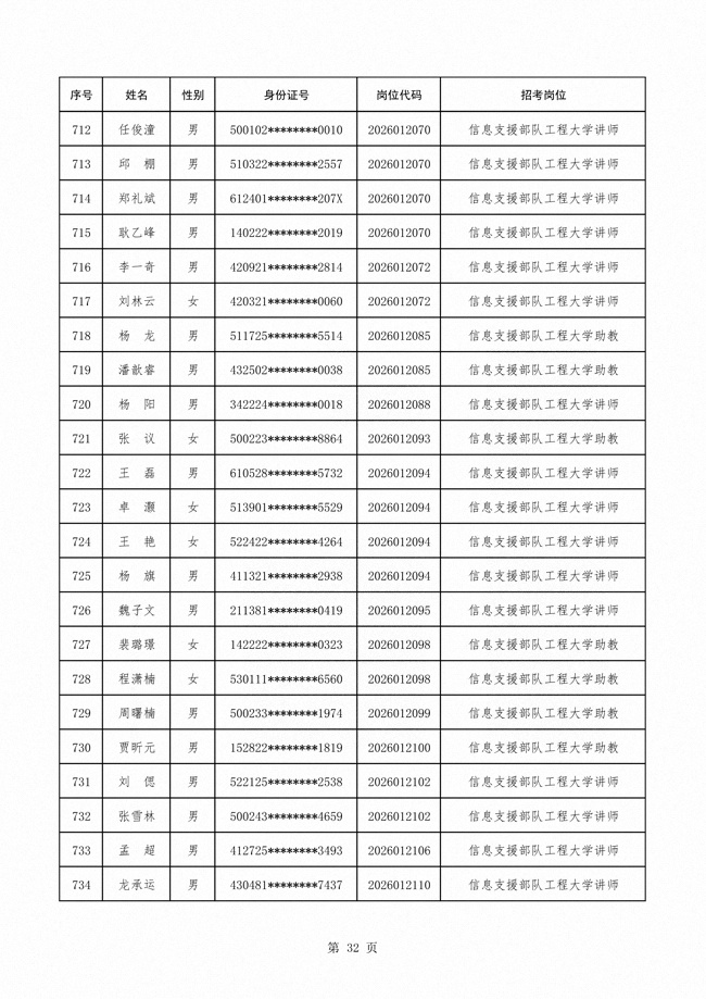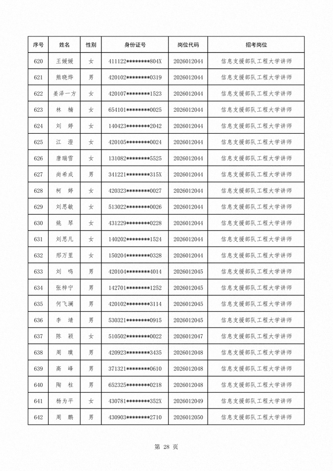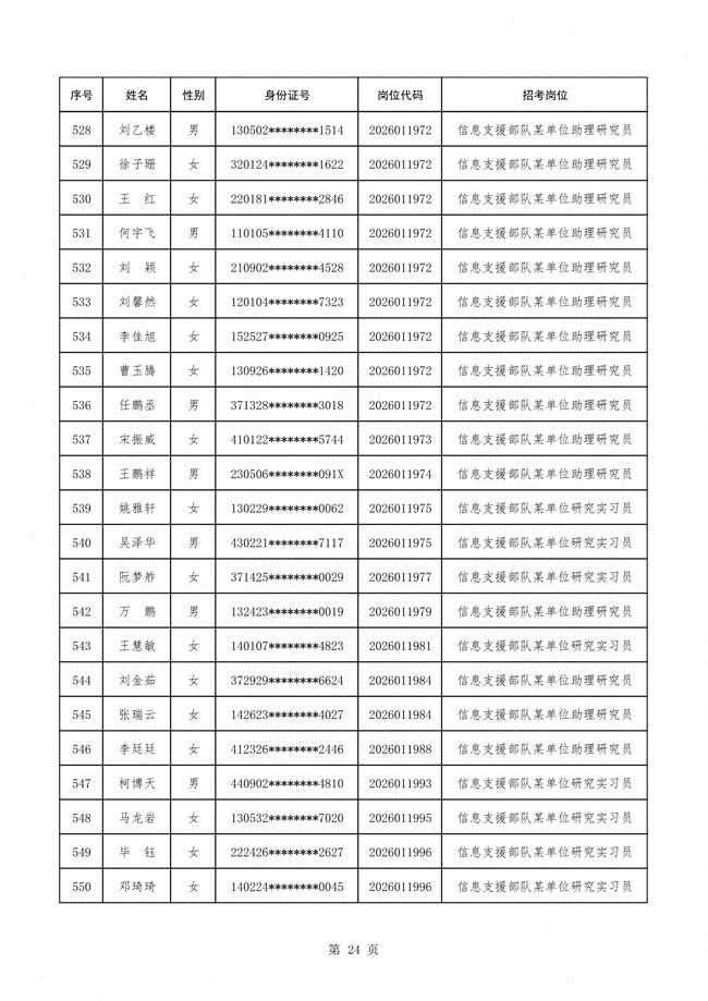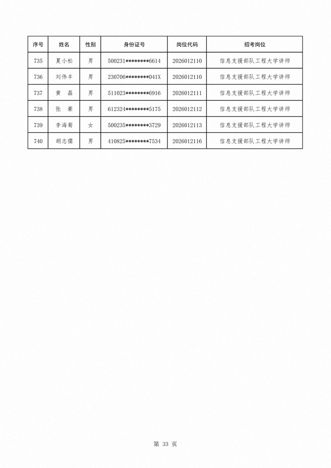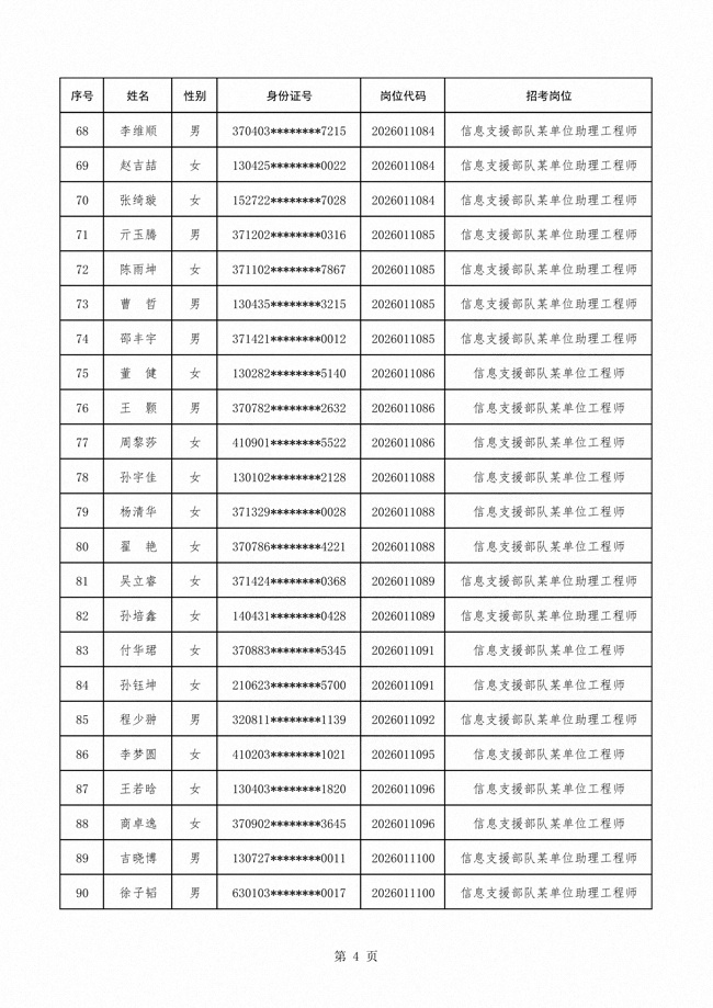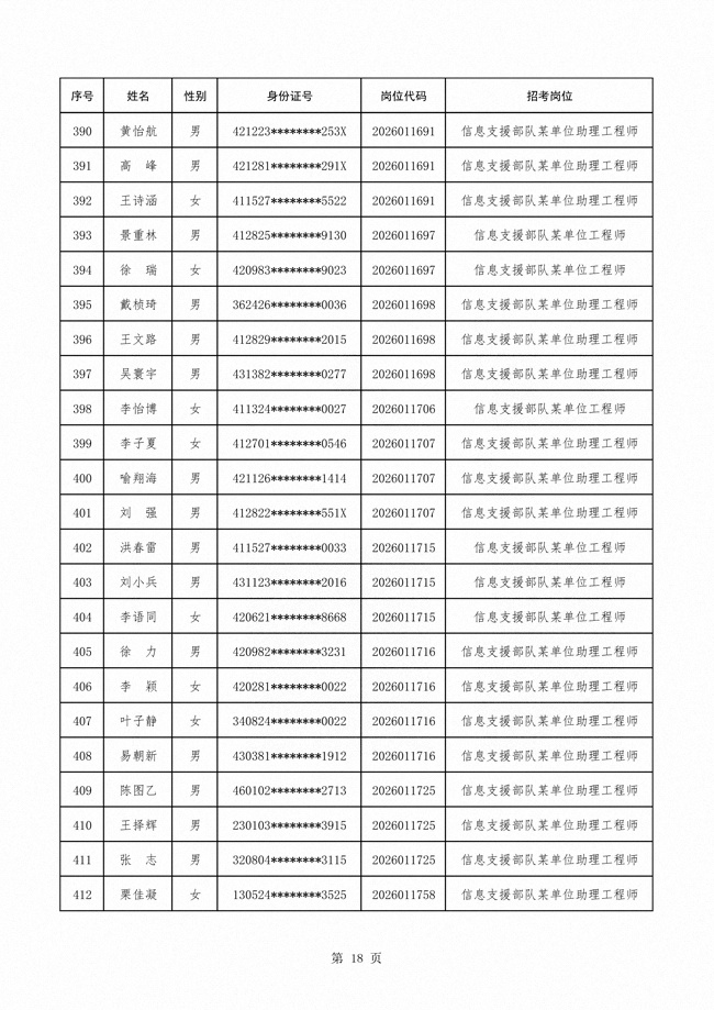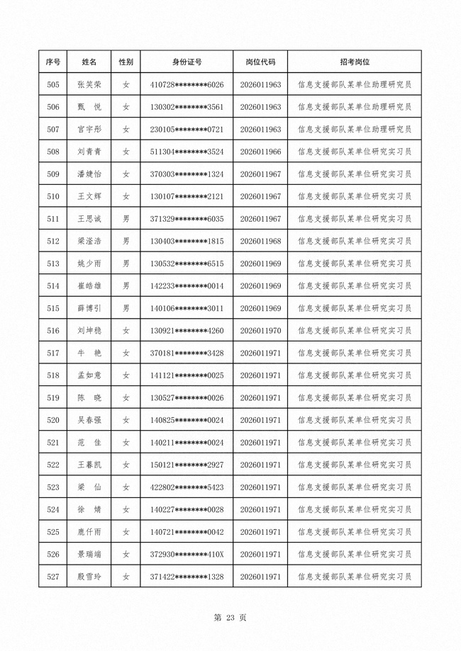 原文标题:公布信息支援部队2026年公开招考文职人员 第一批免笔试直接参加面试人员名单