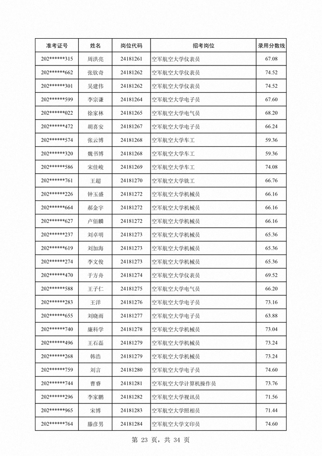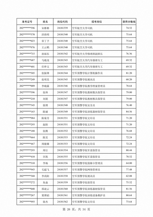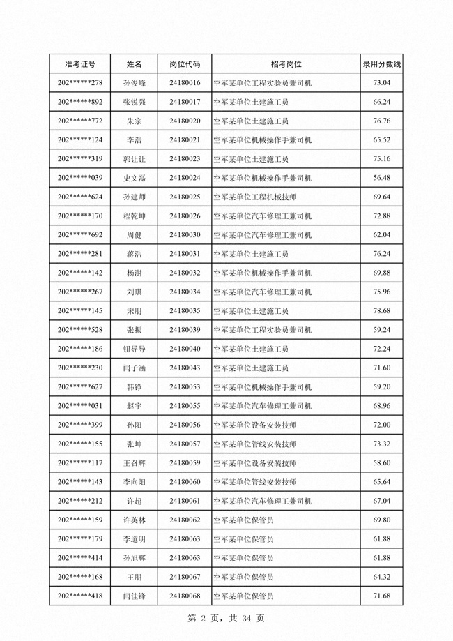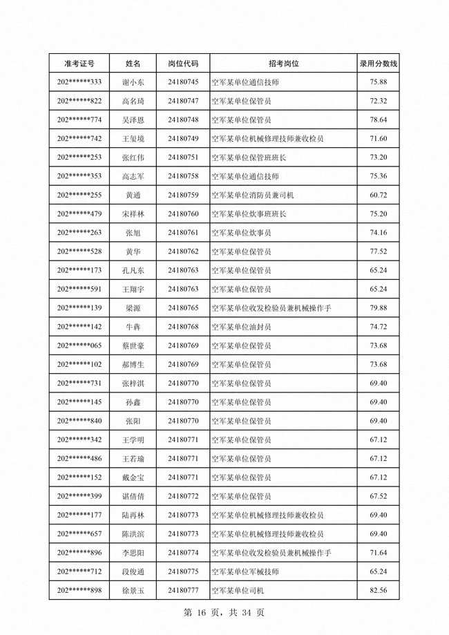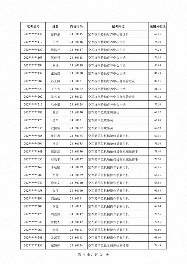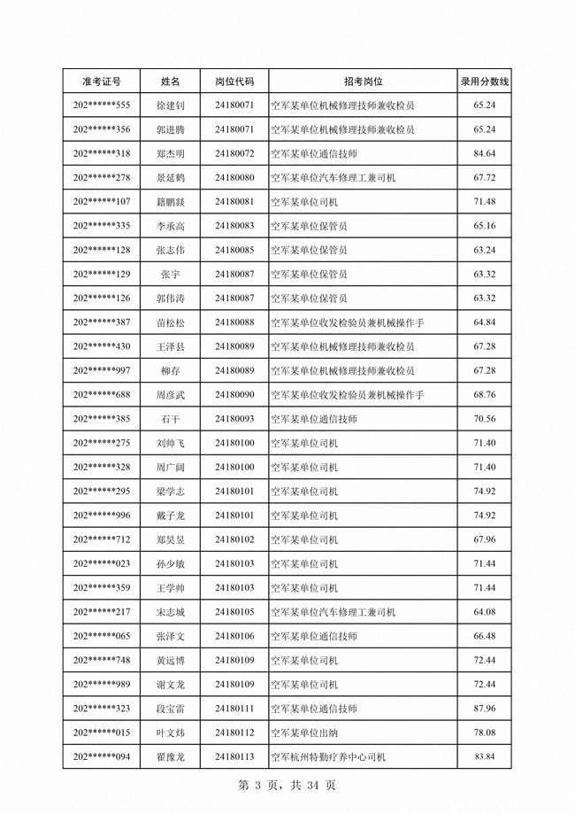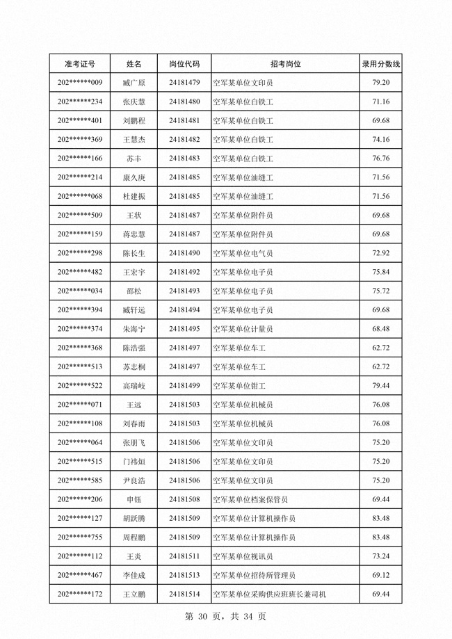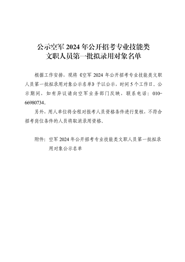 原文标题:公示空军2024年公开招考专业技能类 文职人员第一批拟录用对象名单