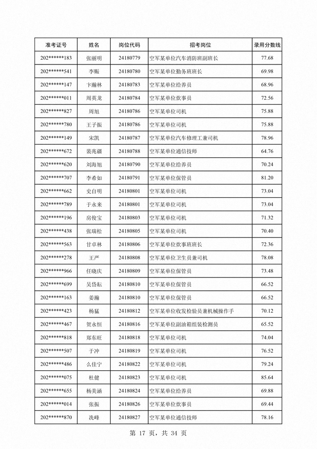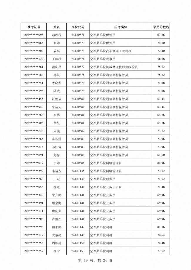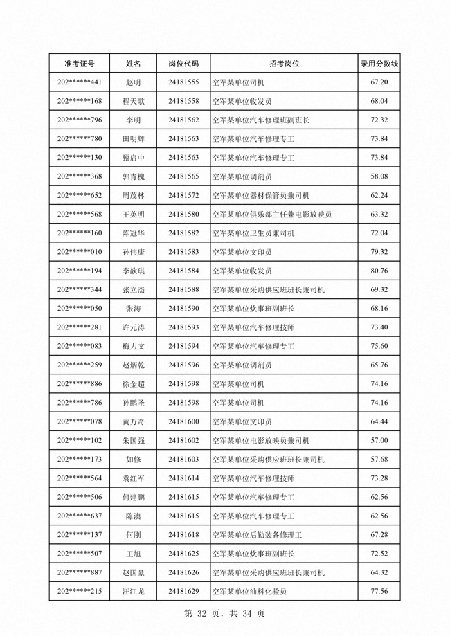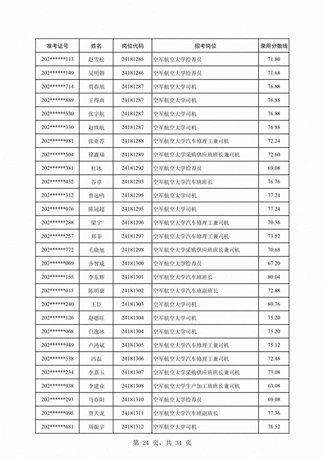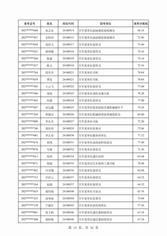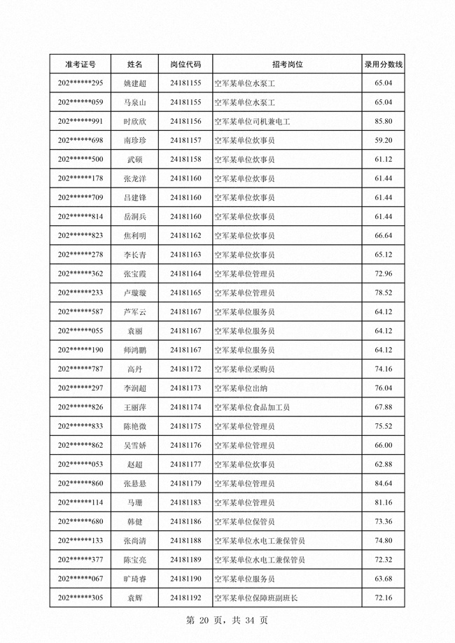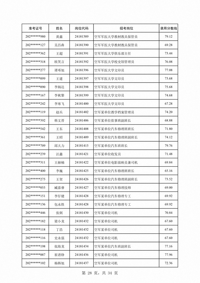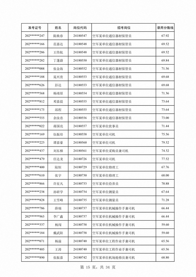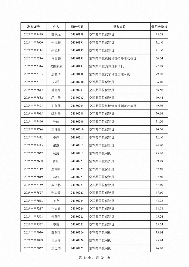 原文标题:公示空军2024年公开招考专业技能类 文职人员第一批拟录用对象名单