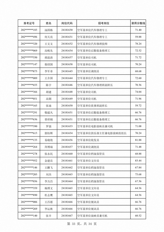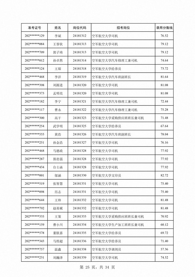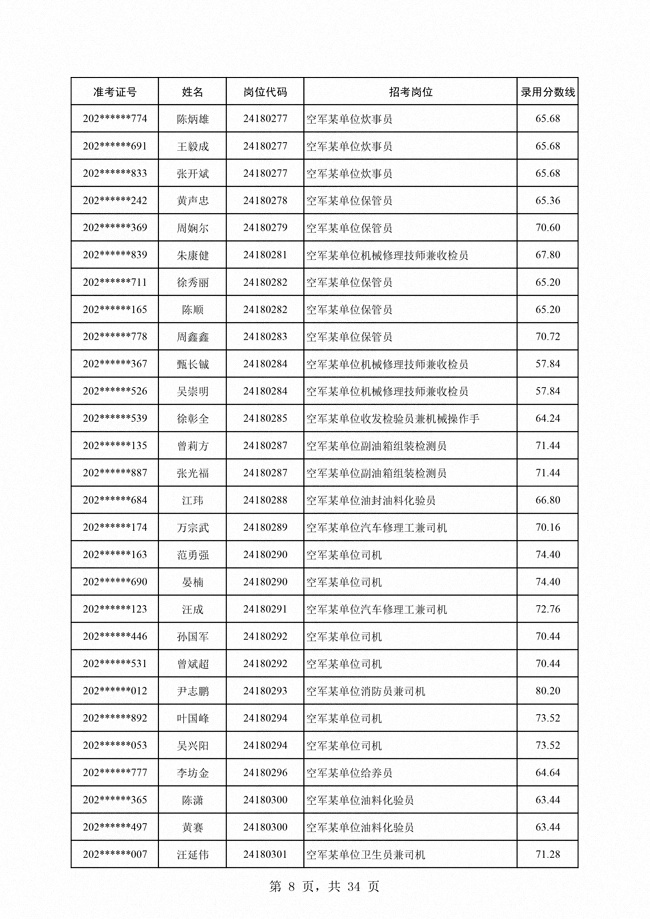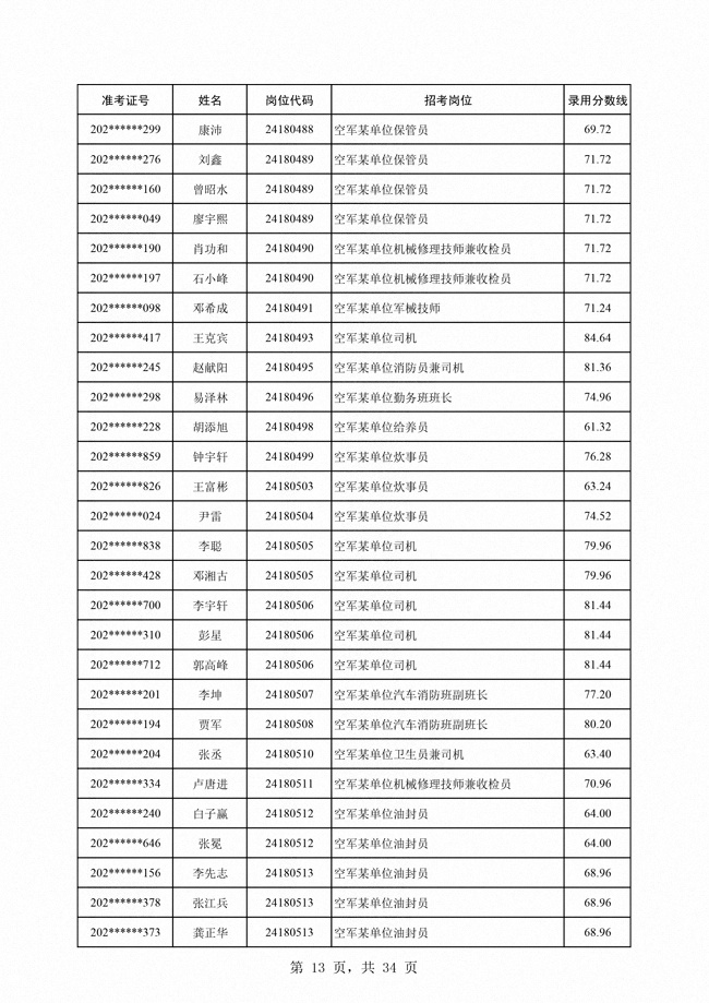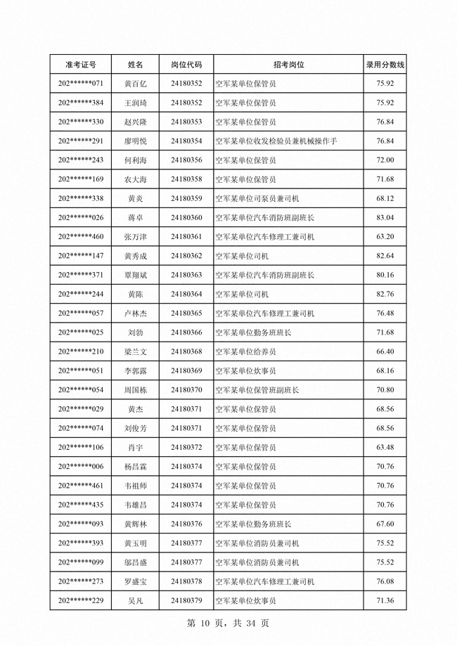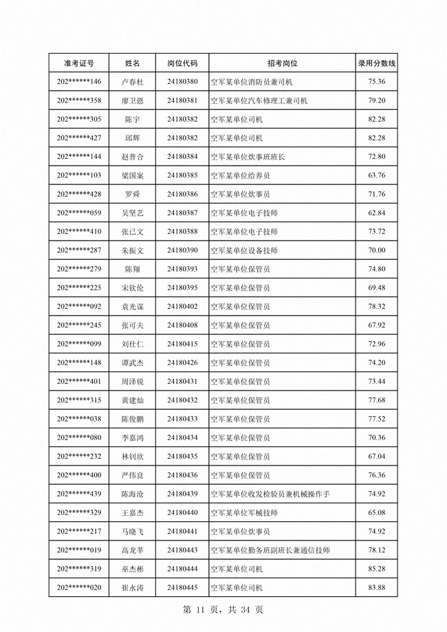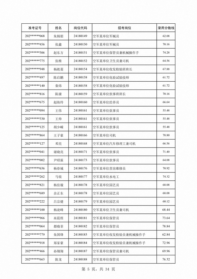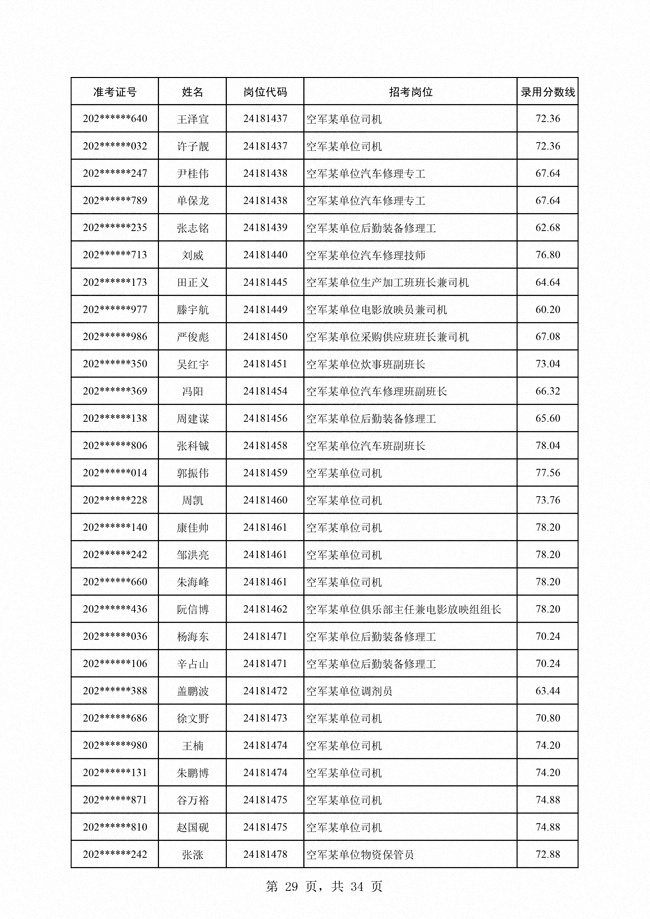 原文标题:公示空军2024年公开招考专业技能类 文职人员第一批拟录用对象名单