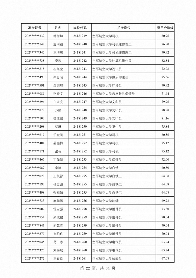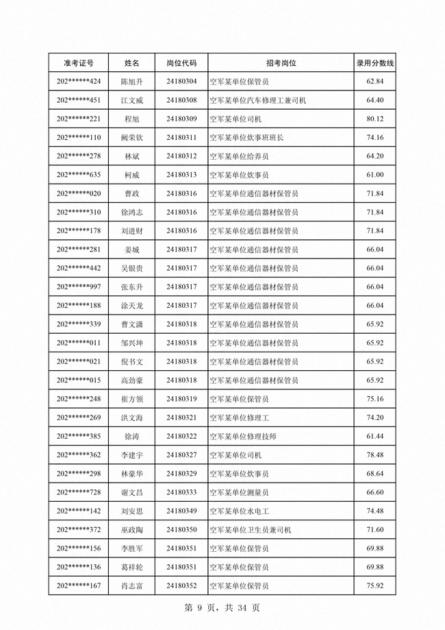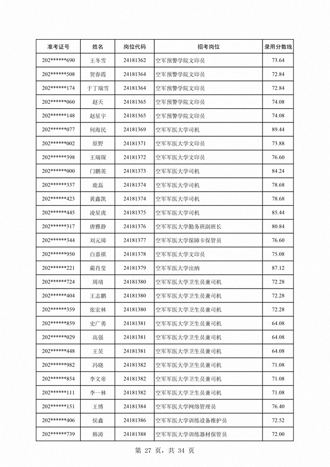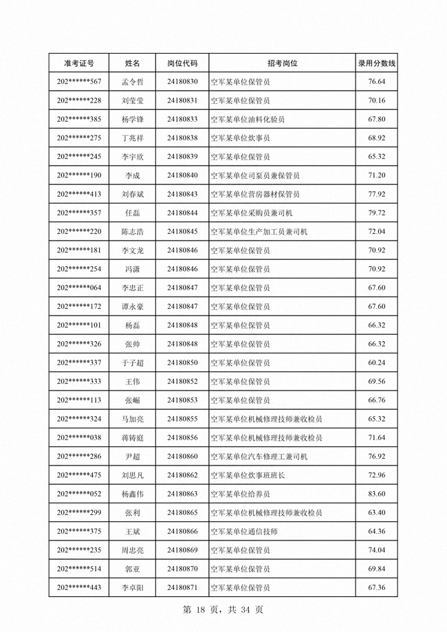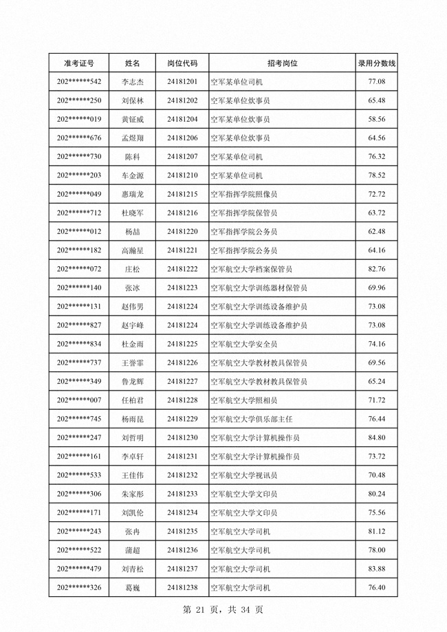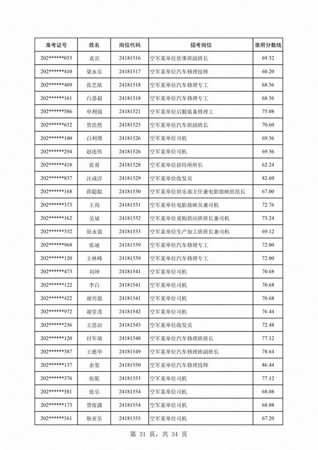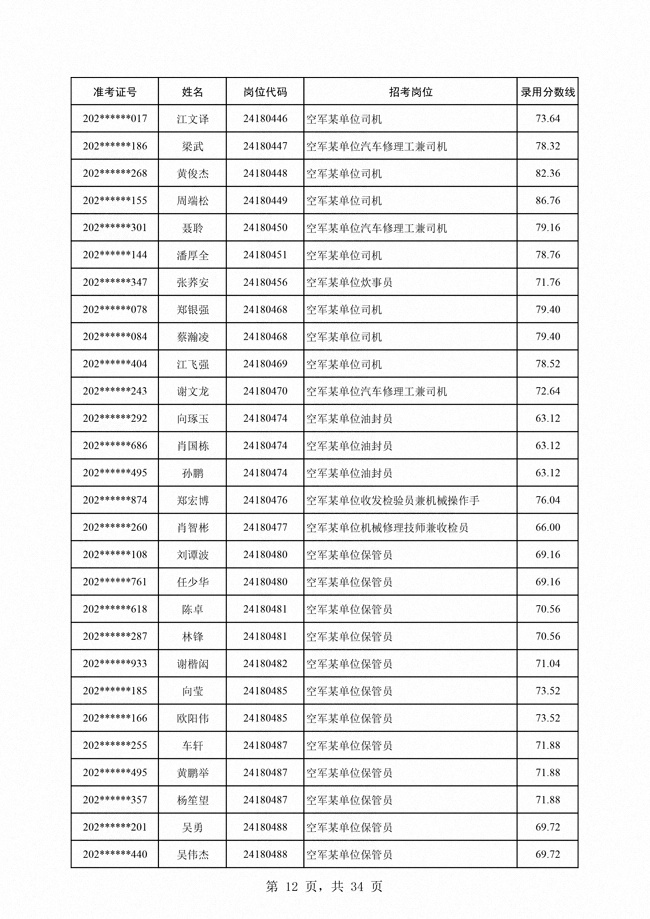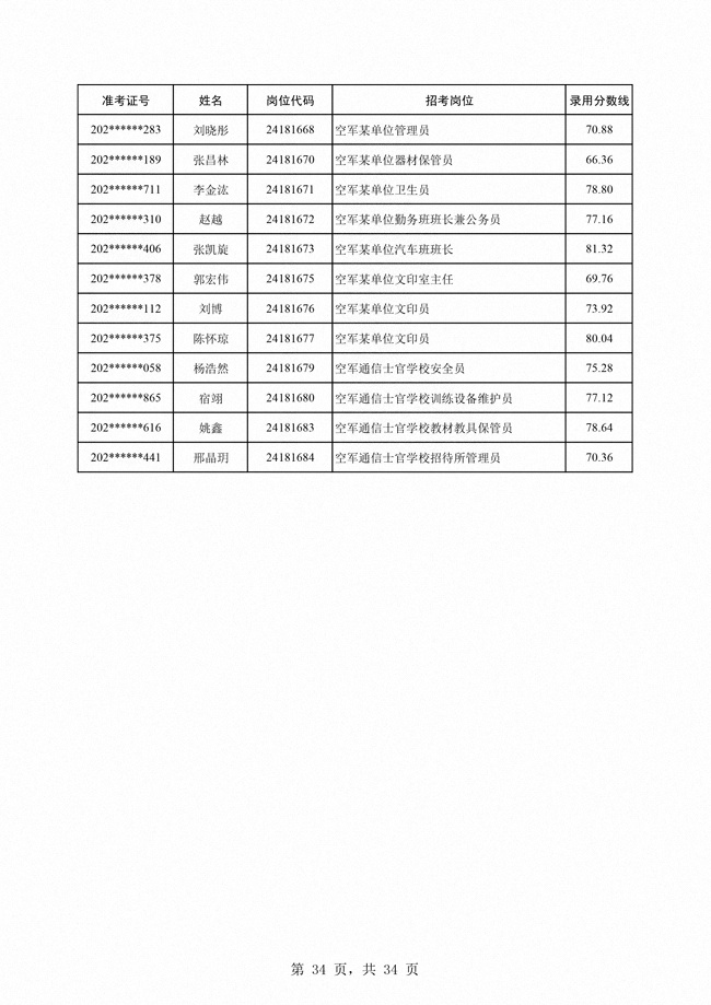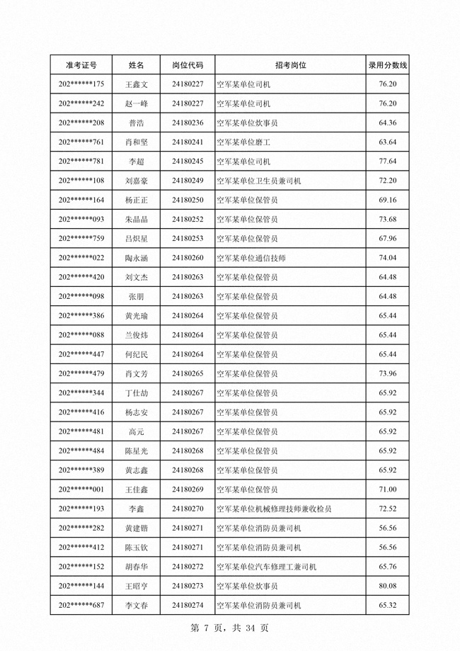 原文标题:公示空军2024年公开招考专业技能类 文职人员第一批拟录用对象名单